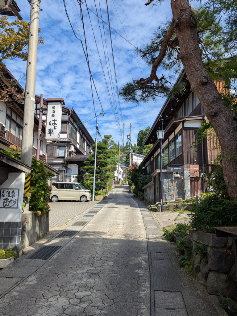 野沢温泉に到着して、まずは村の中を散策します。