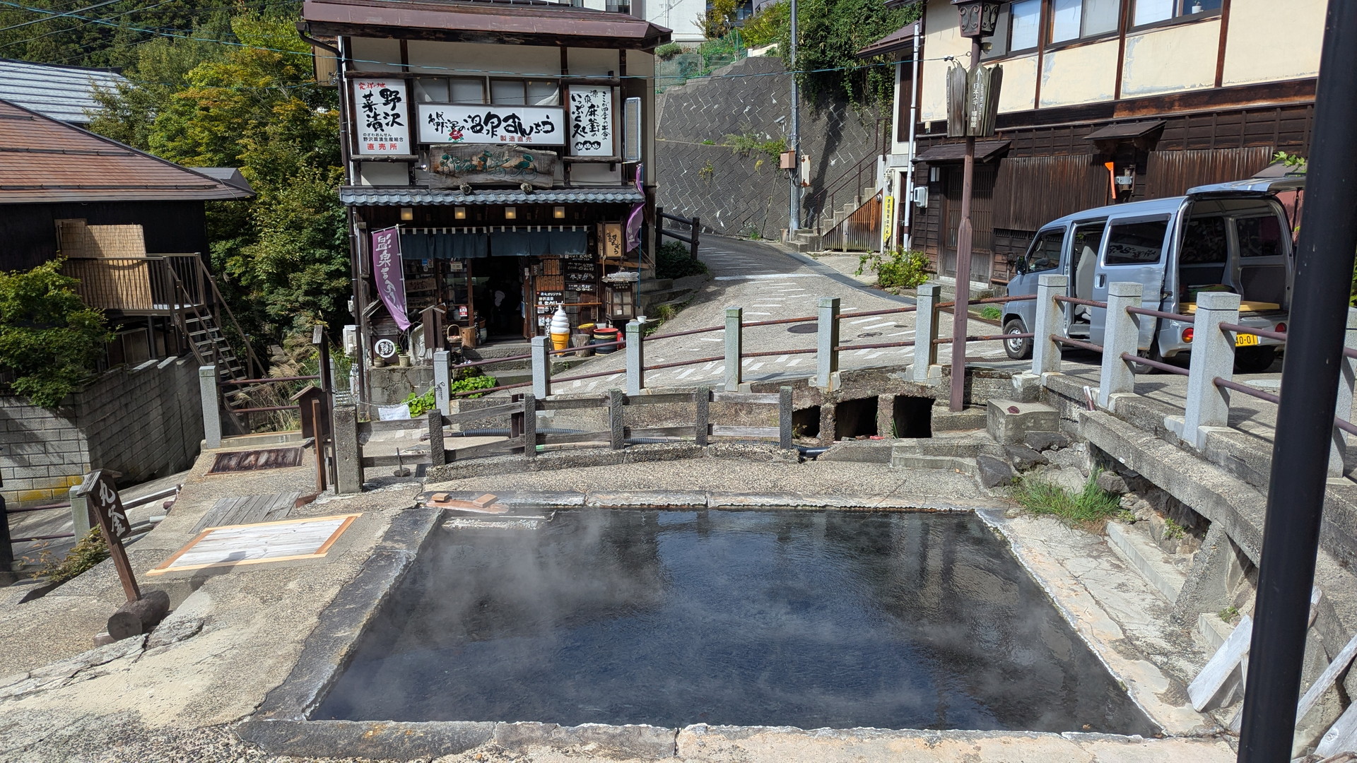 まずは野沢温泉の観光で訪れるべき「麻釜(おがま)」に向かいます。