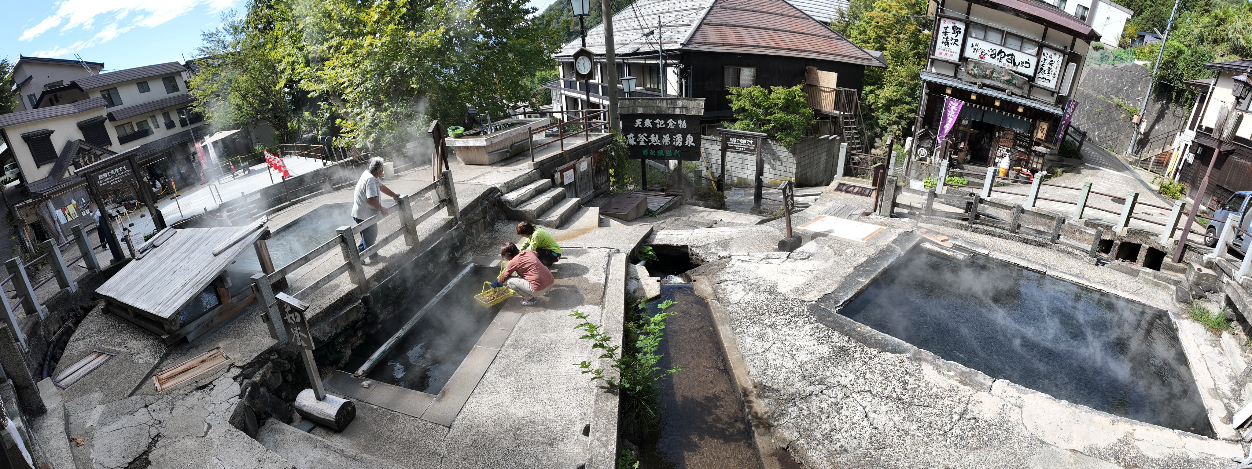 そんな「麻釜」は単なる観光地ではなく、地元住民は、この高温の湯を利用して山菜や野菜を茹でたり、卵を茹でたりする「湯がき」を行っていて、野沢菜の収穫時期には大量の野沢菜を湯がく光景が見られるなど、今もなお野沢温泉村の住民の生活用水として重要な役割を果たしています。