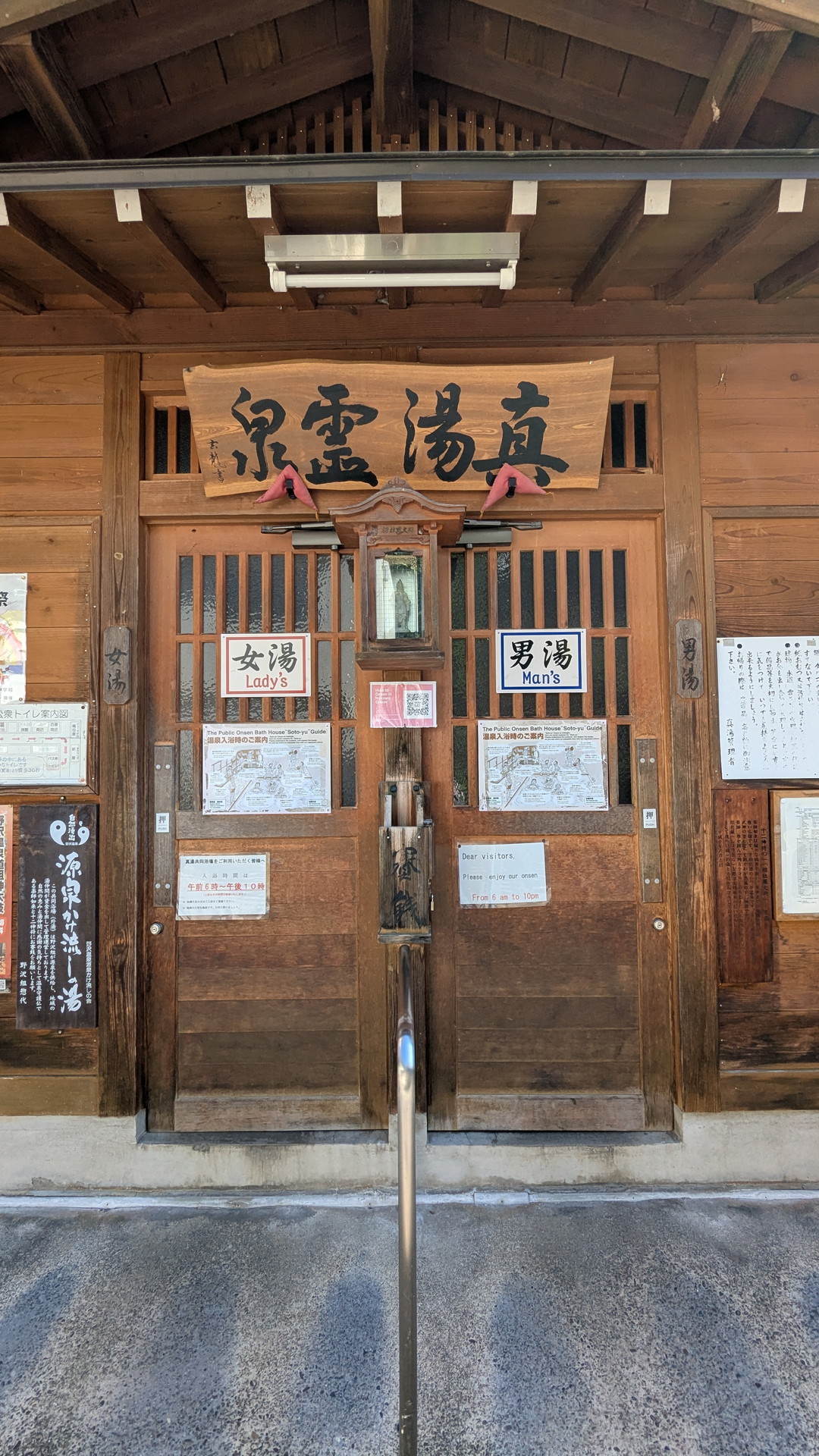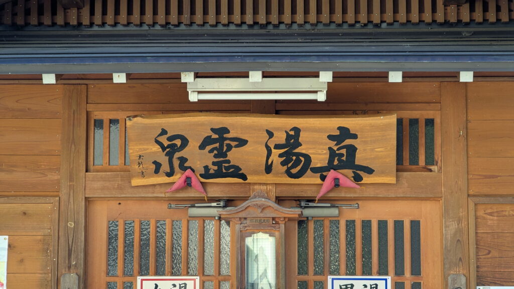「真湯 霊泉」の看板があります。