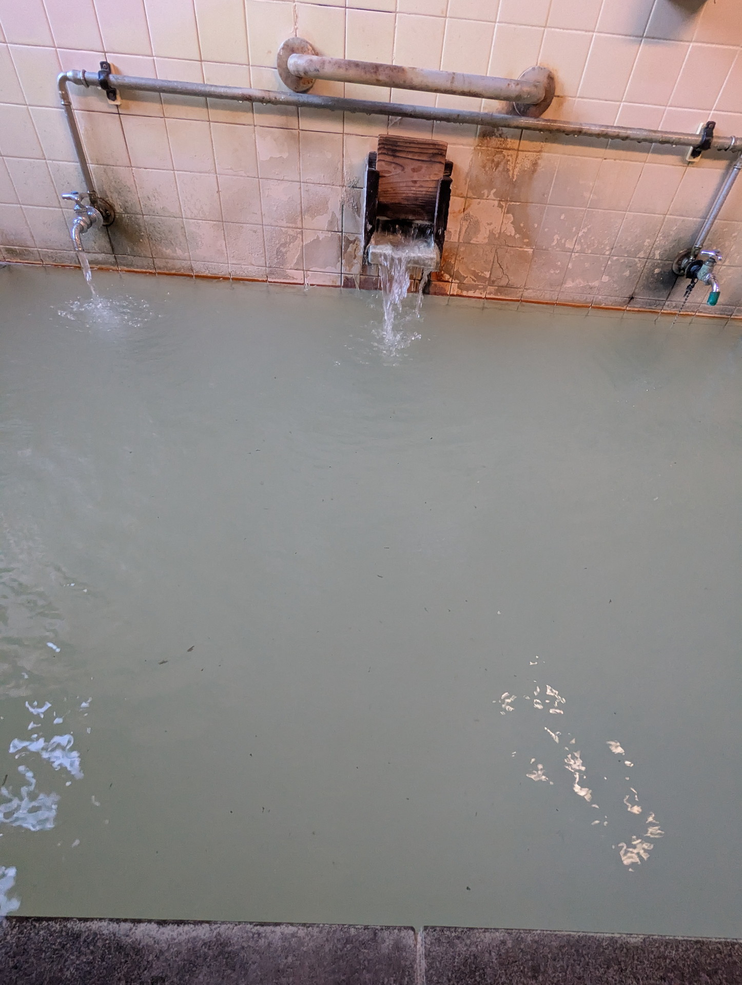 お湯の色は、先ほどの「大湯」と比べるとかなり緑色が濃いですね。