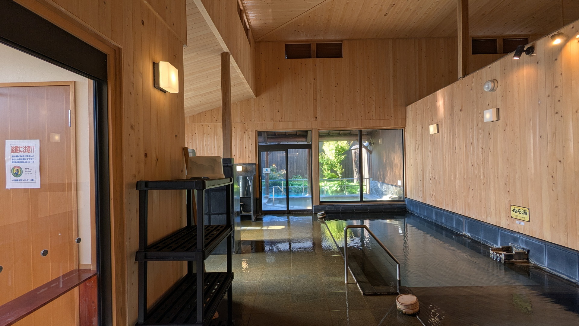 今日はあつ湯が44℃、ぬる湯が41℃と施設入り口の黒板に書いてありました。