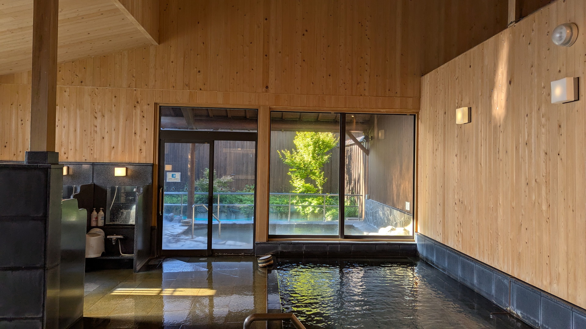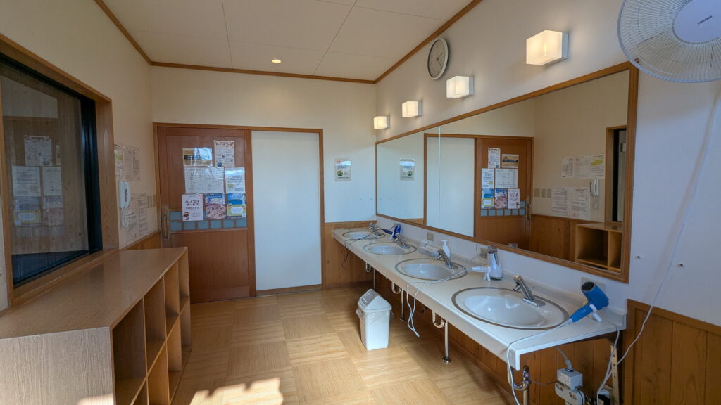 他の外湯は地元住民が管理するシンプルな「お風呂」ですが、ここは町営の温浴施設で、シャンプー・ボディソープ、シャワーが完備、洗い場もしっかりと確保されていて、さらに露天風呂も設けられています。