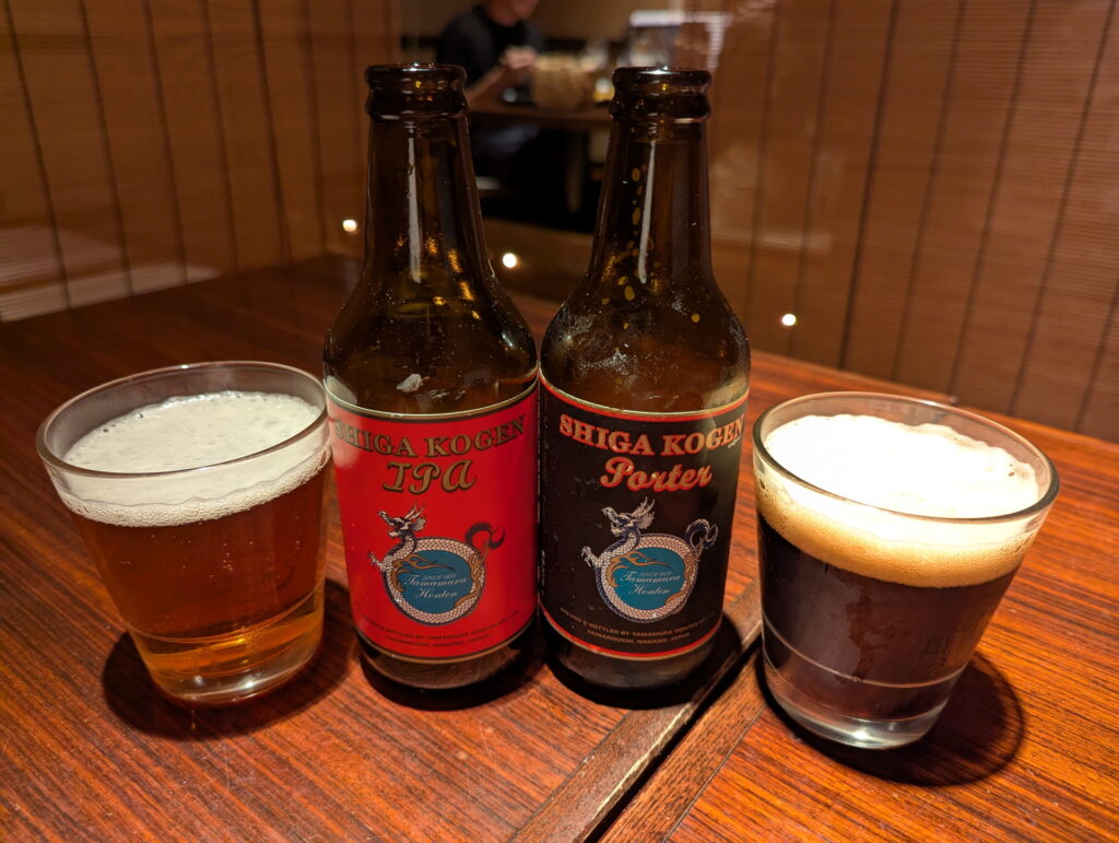 今日の乾杯のビールは、クラフトビールの「志賀高原IPA」と「志賀高原ポーター」です。
