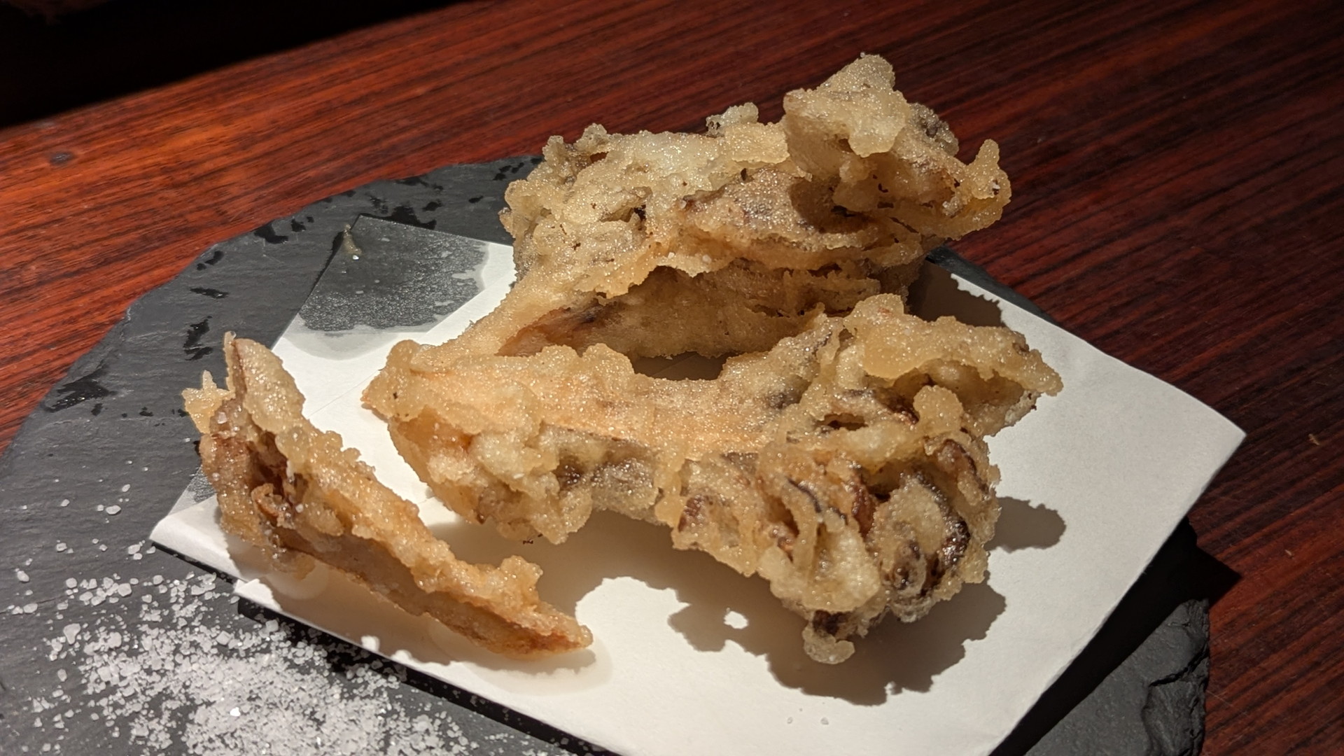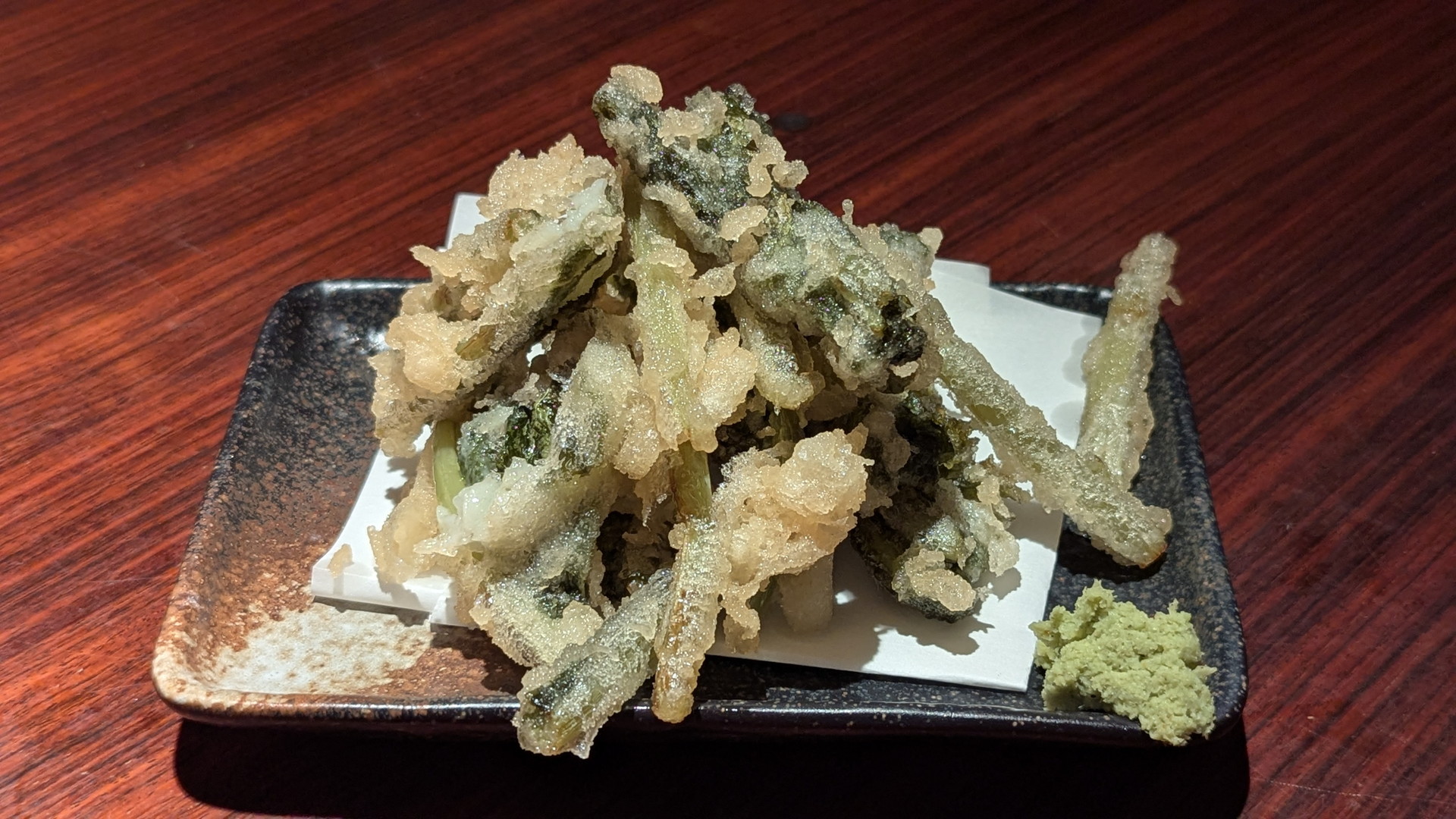 天ぷらにして美味しいの?と思ってましたが、食べてみるとめちゃウマでした。わさびもいいアクセントになってました。