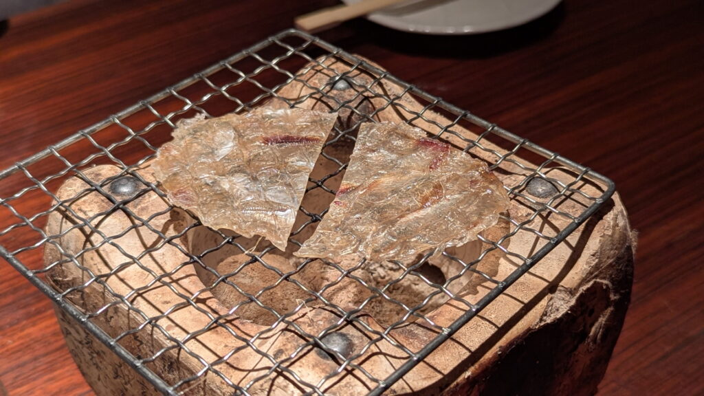 エイヒレも炙ると香ばしくなって、普段食べるエイヒレとはちょっと違うように感じます。