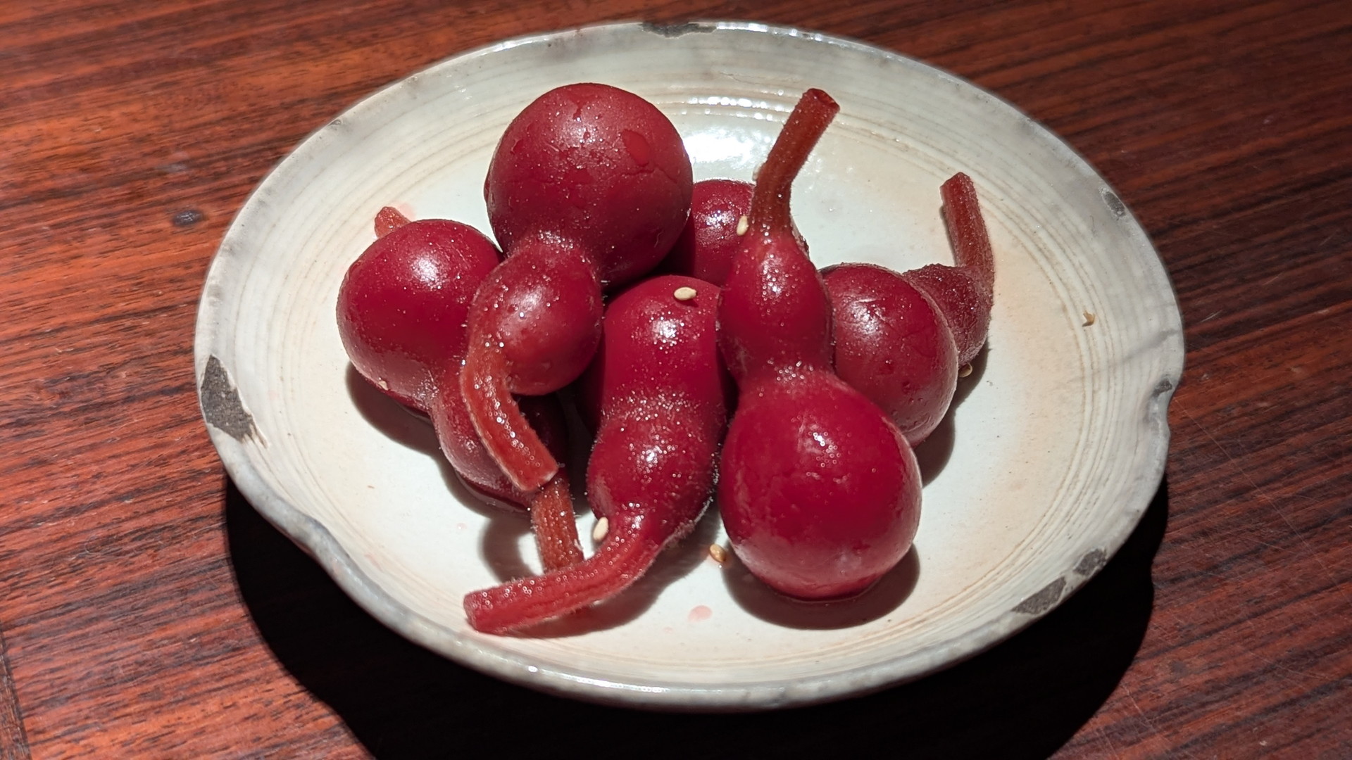 コリコリした食感としば漬けのほどよい酸味でお酒のアテによかったです。