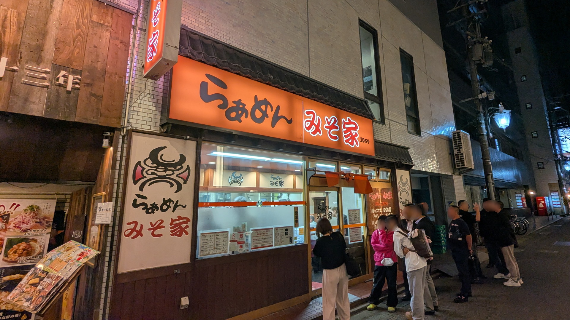 夜遅い時間でも行列ができています。みんな〆のラーメンでしょうか。