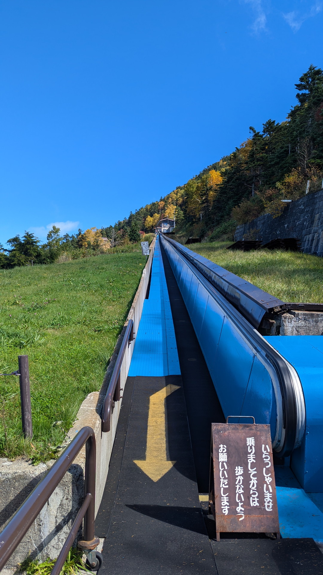 「横手山スカイレーター」は、志賀高原・横手山の標高2,100m付近から山頂へと向かう、日本一標高の高い場所にある屋外エスカレーター(動く歩道)です。