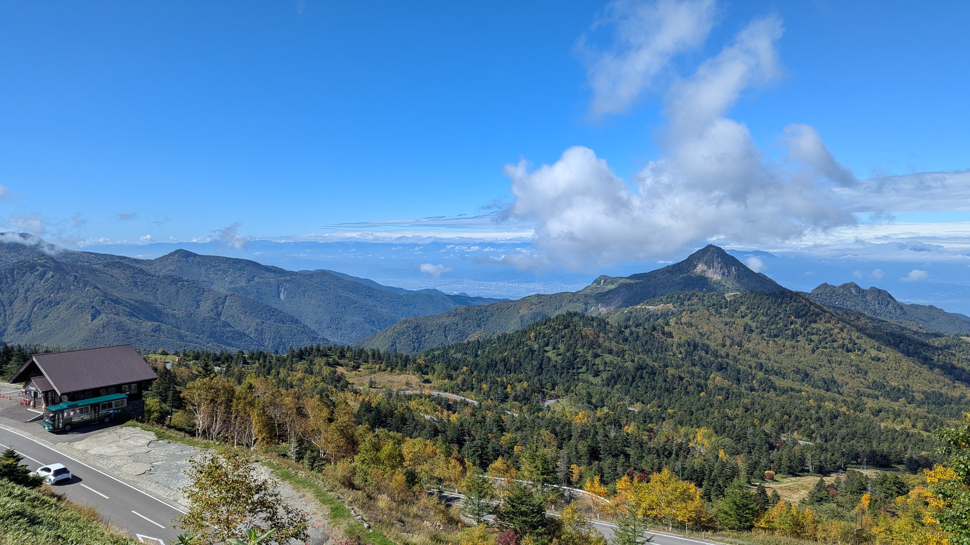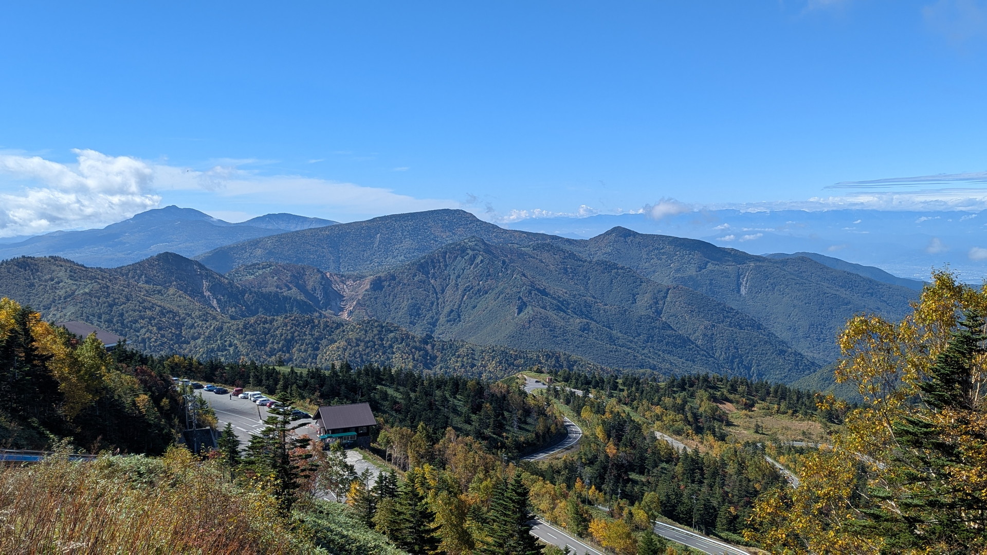今日の最初の目的地の「横手山ドライブイン」からの眺めもとてもよかったですが、ここからは高さがある分、さらに眺めがいいですね。