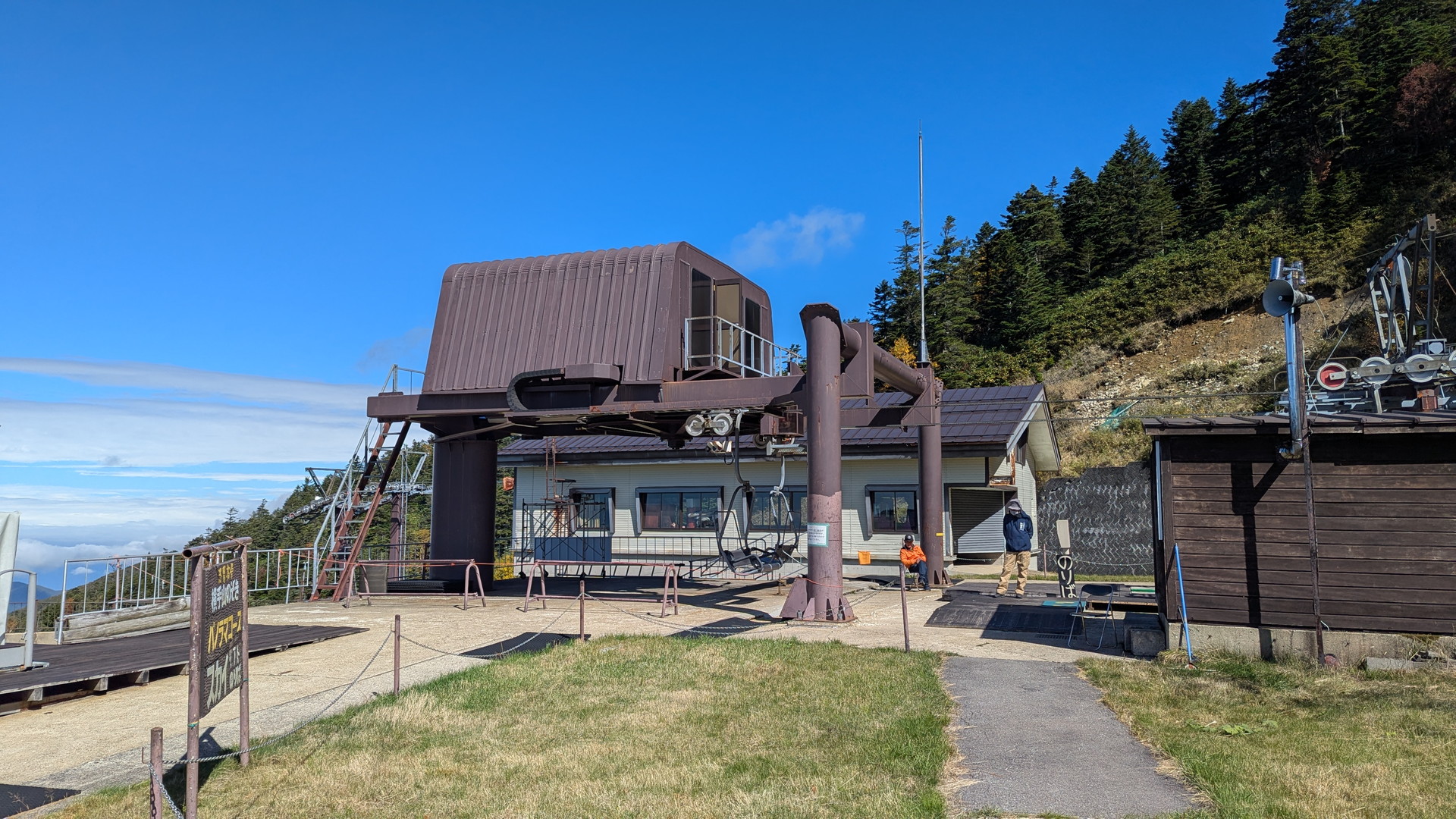 先ほどの「横手山スカイレーター」から乗り継ぐことで、登山することなく山頂までたどり着くことができます。