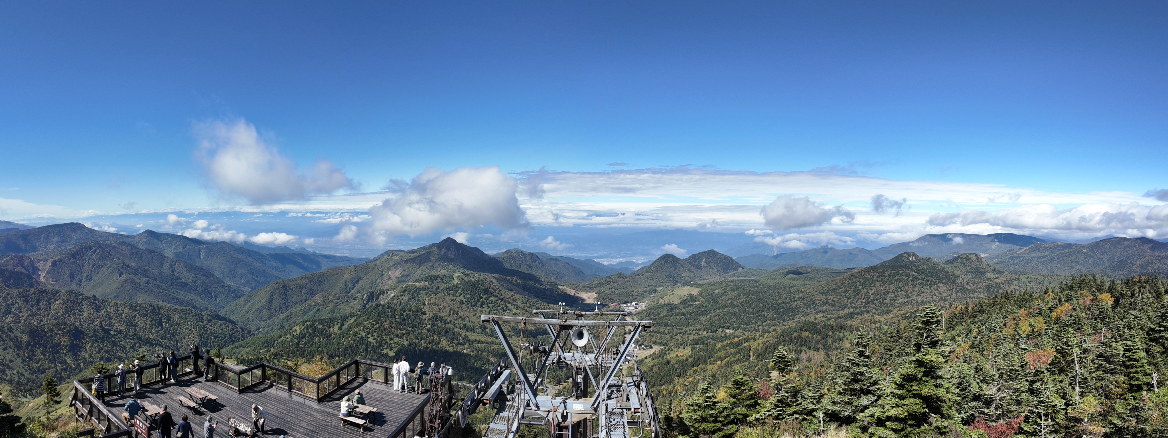 横手山2307満天ビューテラスは、長野県と群馬県の県境にそびえる志賀高原の最高峰「横手山」の山頂付近、標高2,307メートルに位置する絶景展望スポットです。
