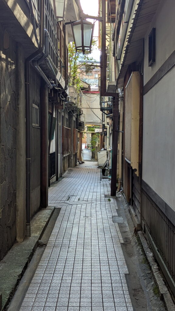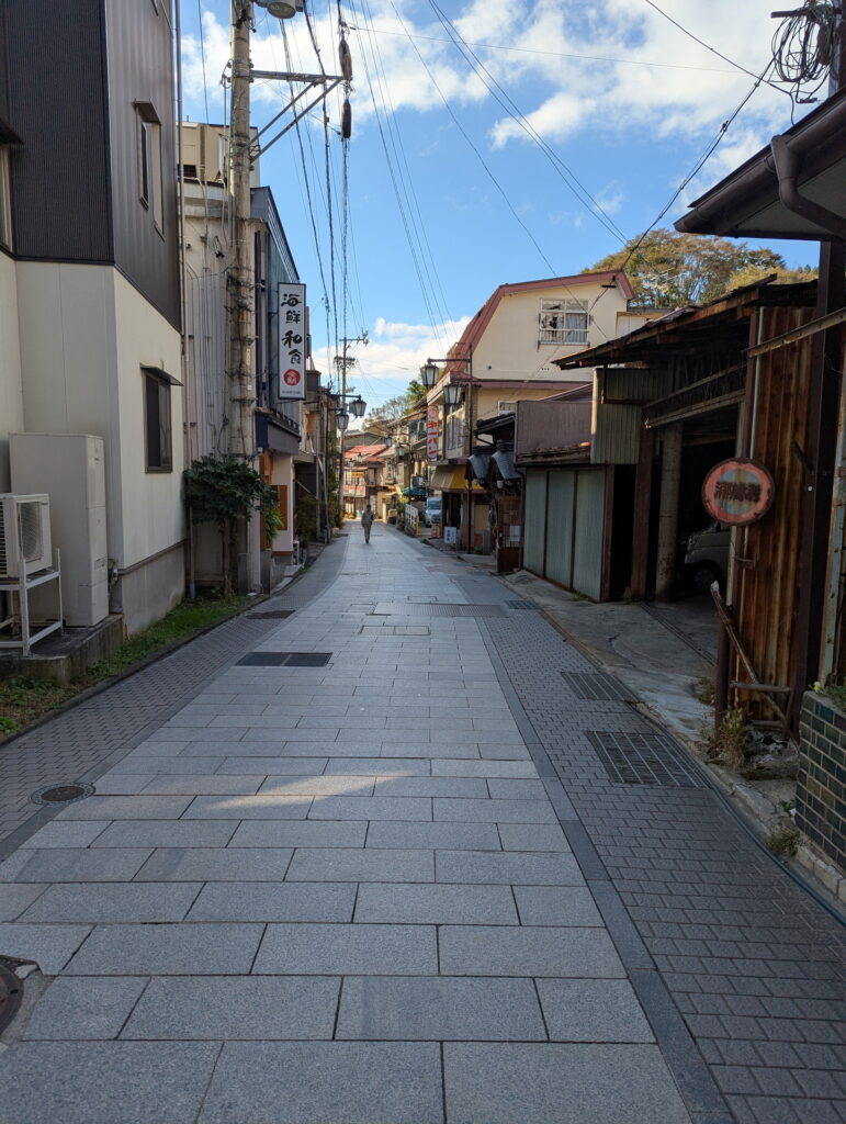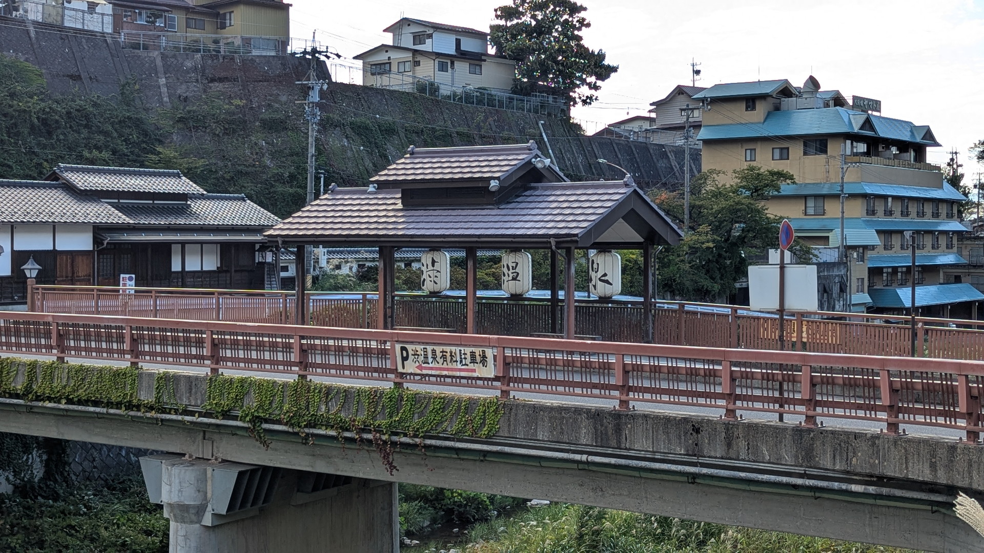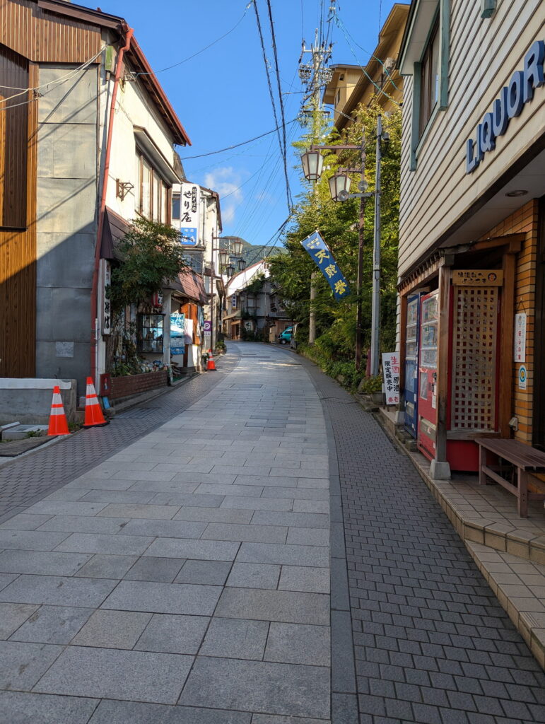駐車場から徒歩数分で温泉街の中にやってきました。