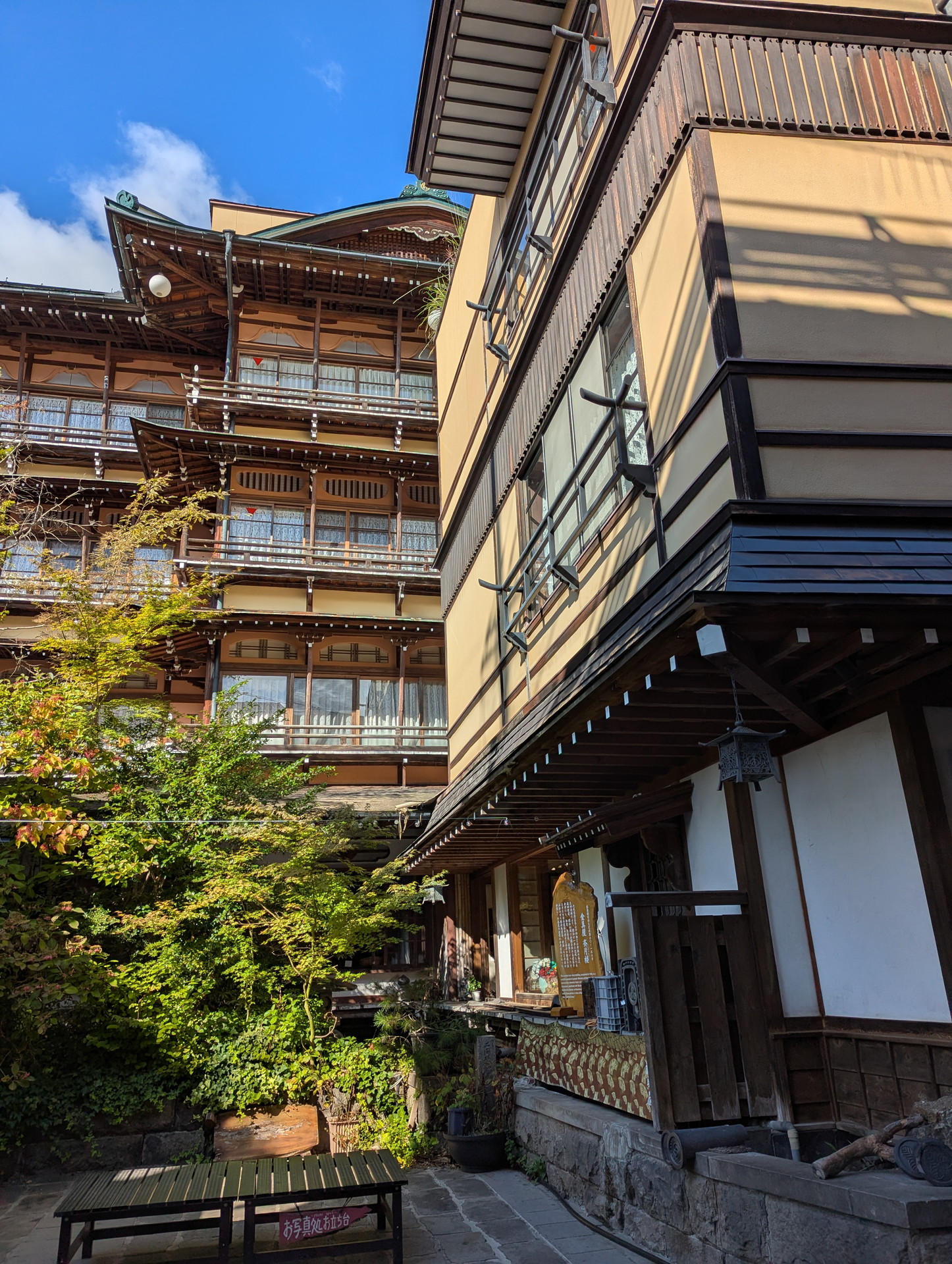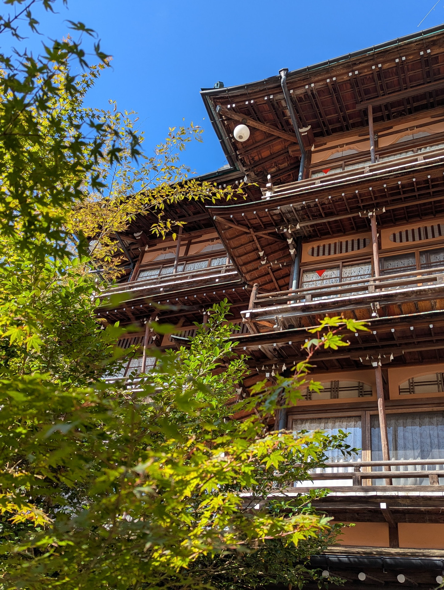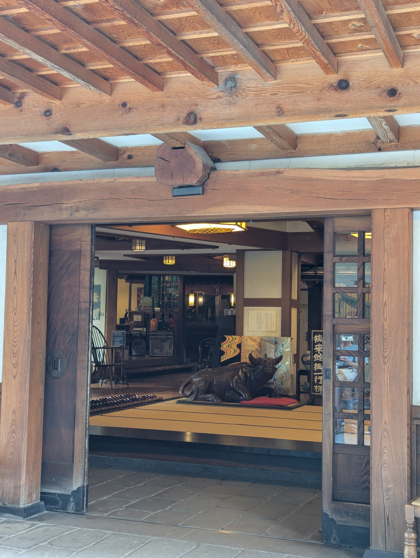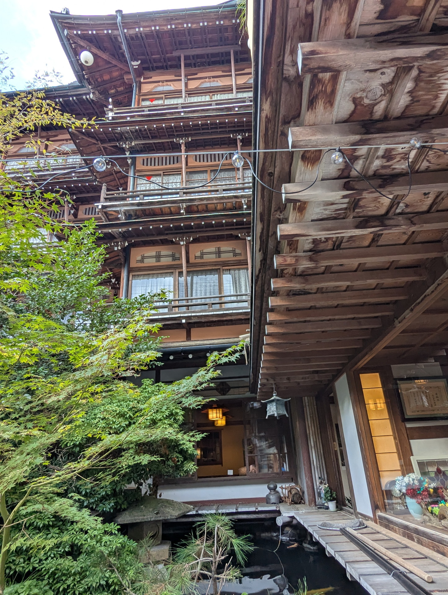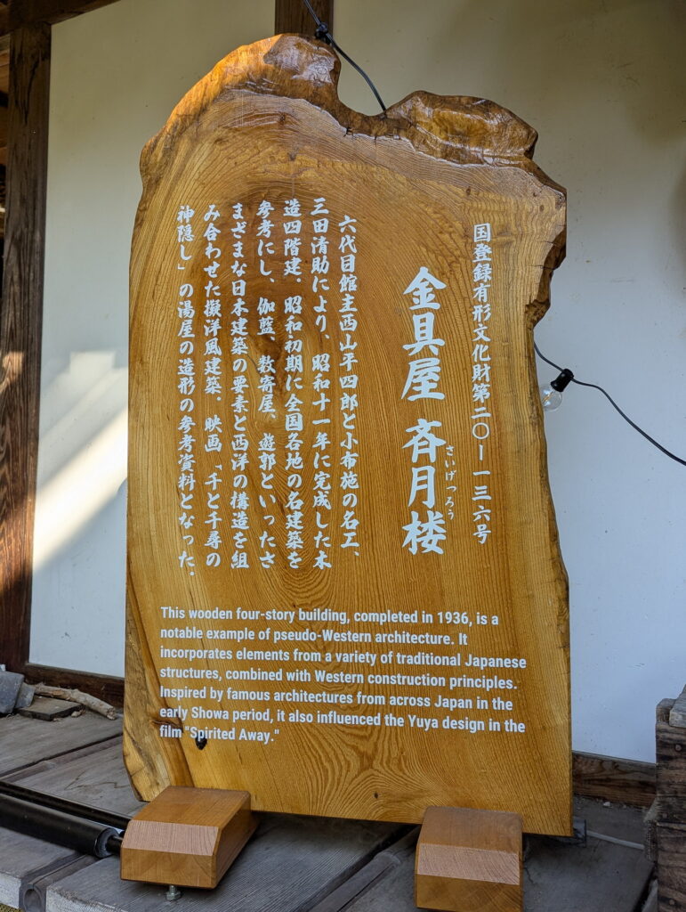 この宿の建物のデザインは、伝統的な日本建築様式と西洋建築様式を組み合わせたものになっていて、この独特のデザインが映画「千と千尋の神隠し」の湯屋のデザインの参考にされたそうです。