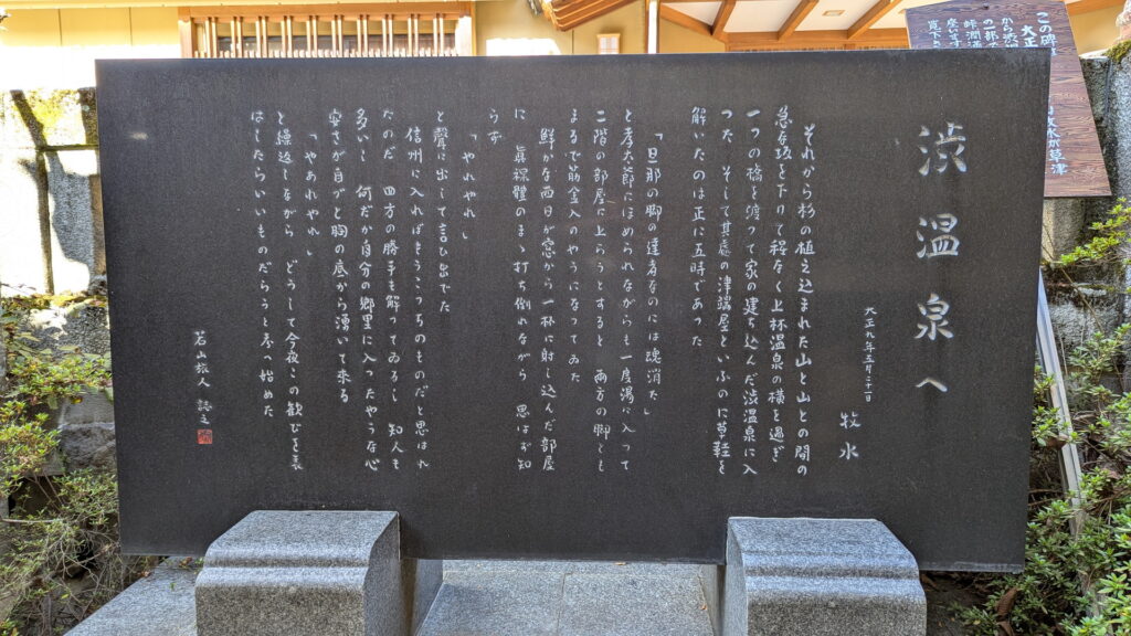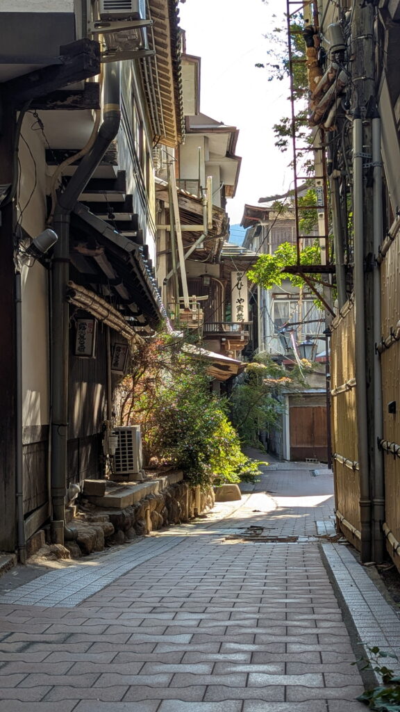 この温泉の名物は、宿泊者が巡ることができる九つの外湯「九湯(きゅうとう)巡り」です(今回は宿泊しないのでできませんが)。外湯それぞれ源泉やご利益が異なり、専用の鍵を手に浴衣姿で外湯を巡る体験は、渋温泉ならではの楽しみです。湯は高温で効能豊かとされ、旅の疲れを芯から癒してくれます。