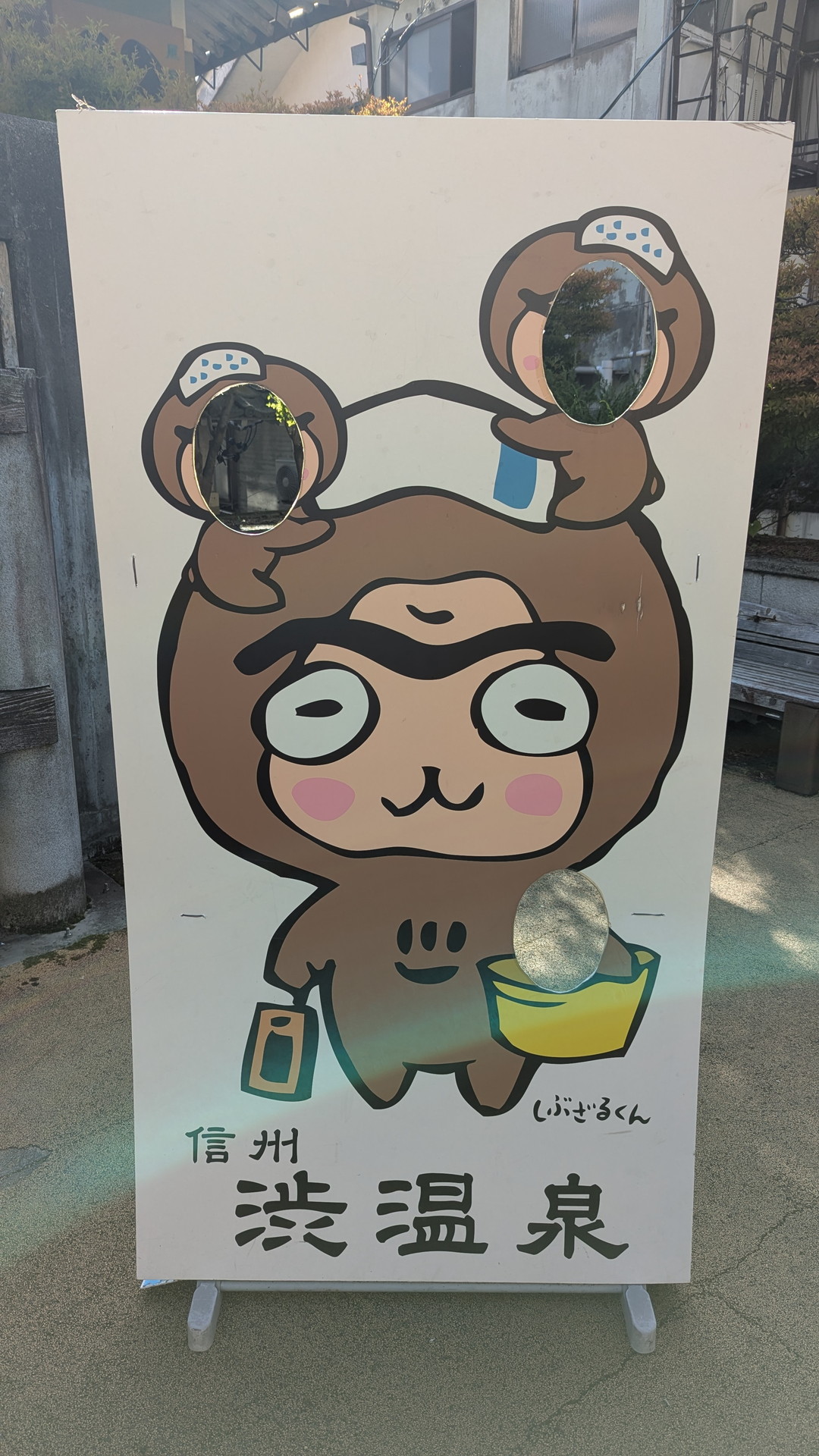 ここから2kmほど離れた場所にある「地獄谷野猿公苑」は、冬場に猿が温泉に入ることで有名ですが、そこから「しぶざるくん」が生まれたのかなぁと思ってます。