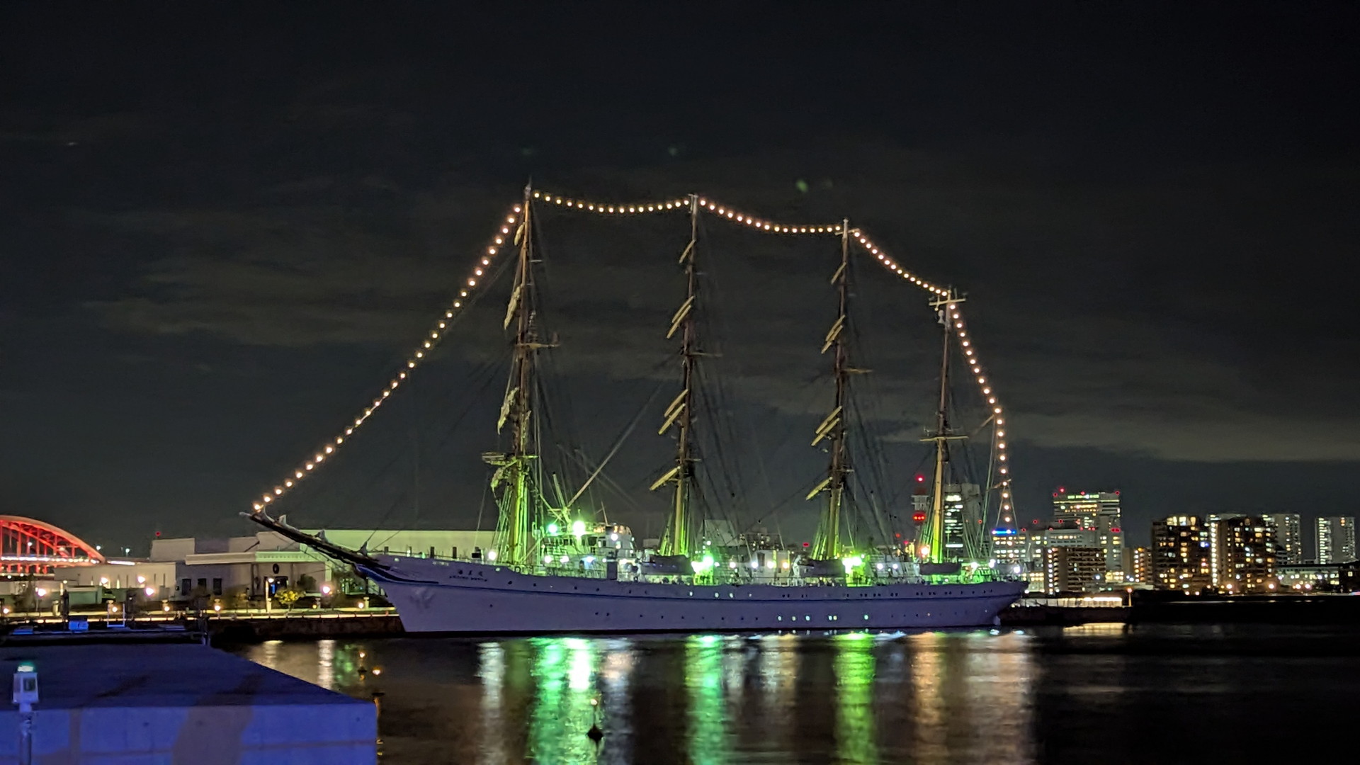 「メリケンパーク」から「TOTTEI PARK」に向かう途中にある「波止場町緑地」がライトアップされていたので、ちょっと寄ってみました。