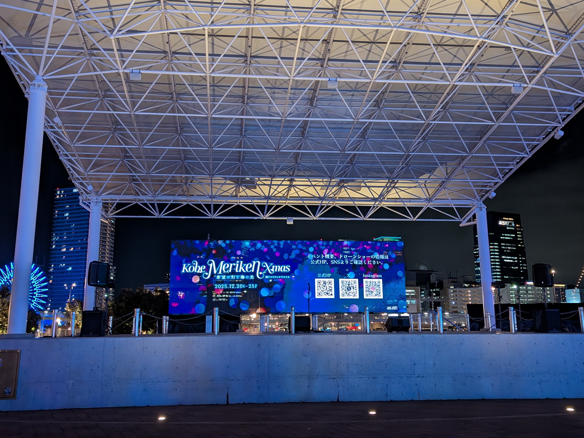 会場には、フード&ダイニングエリアや温かい料理・ドリンクを楽しめる屋台が並び、家族や友人と過ごすひとときにもぴったり。メリケンパーク全体がイルミネーションや光の演出で彩られ、神戸港の夜景と相まってロマンチックな雰囲気を演出します。