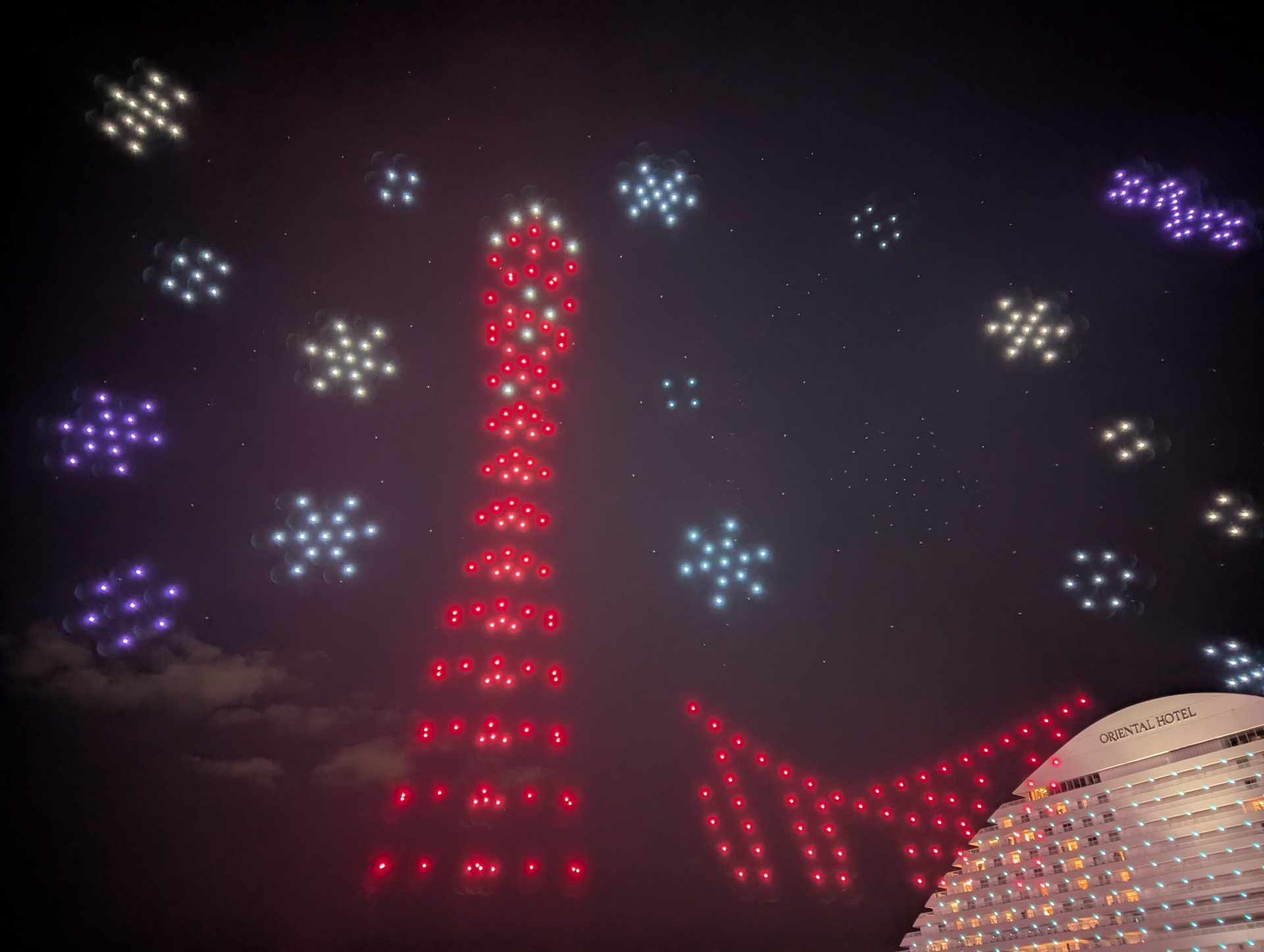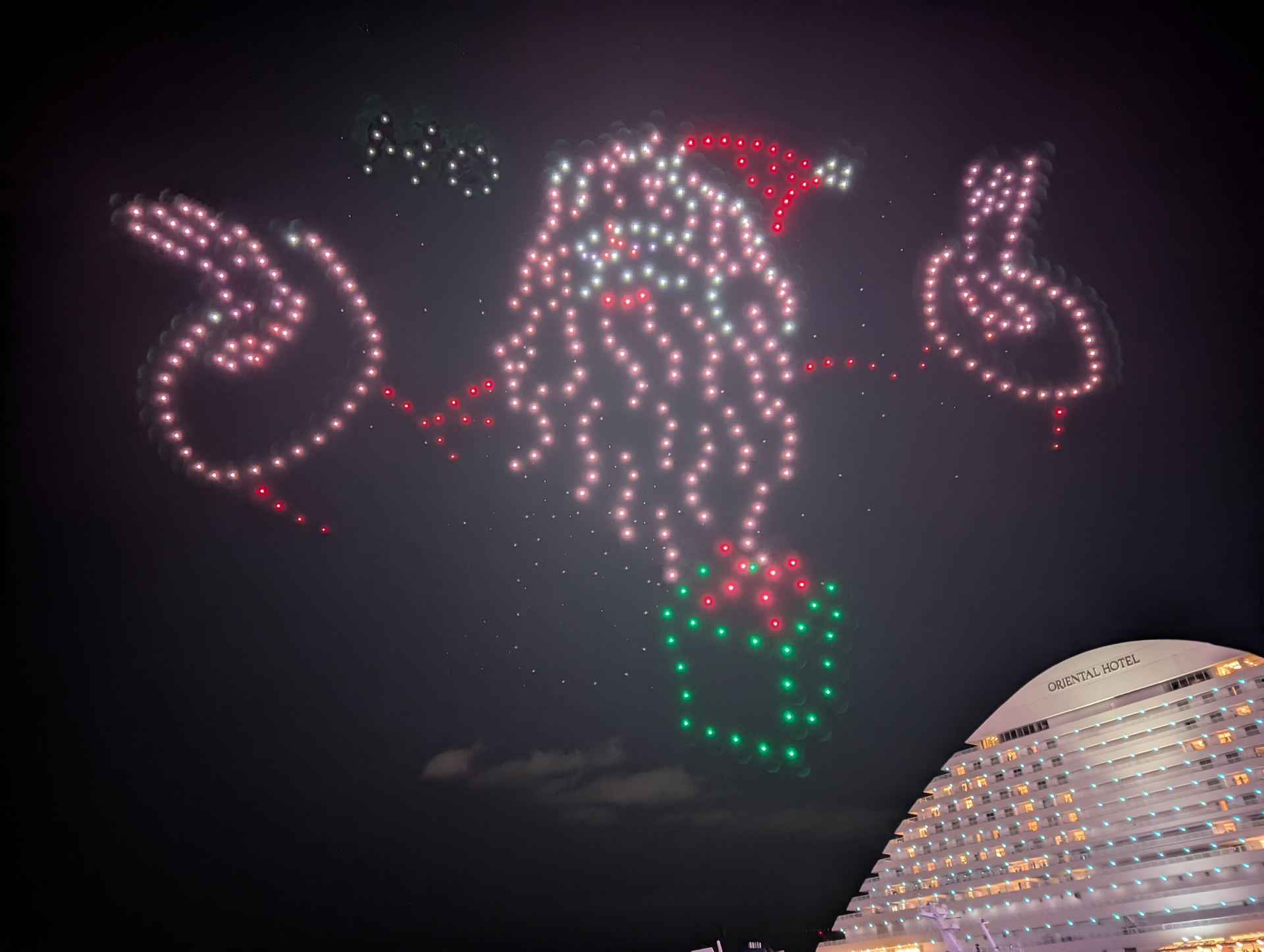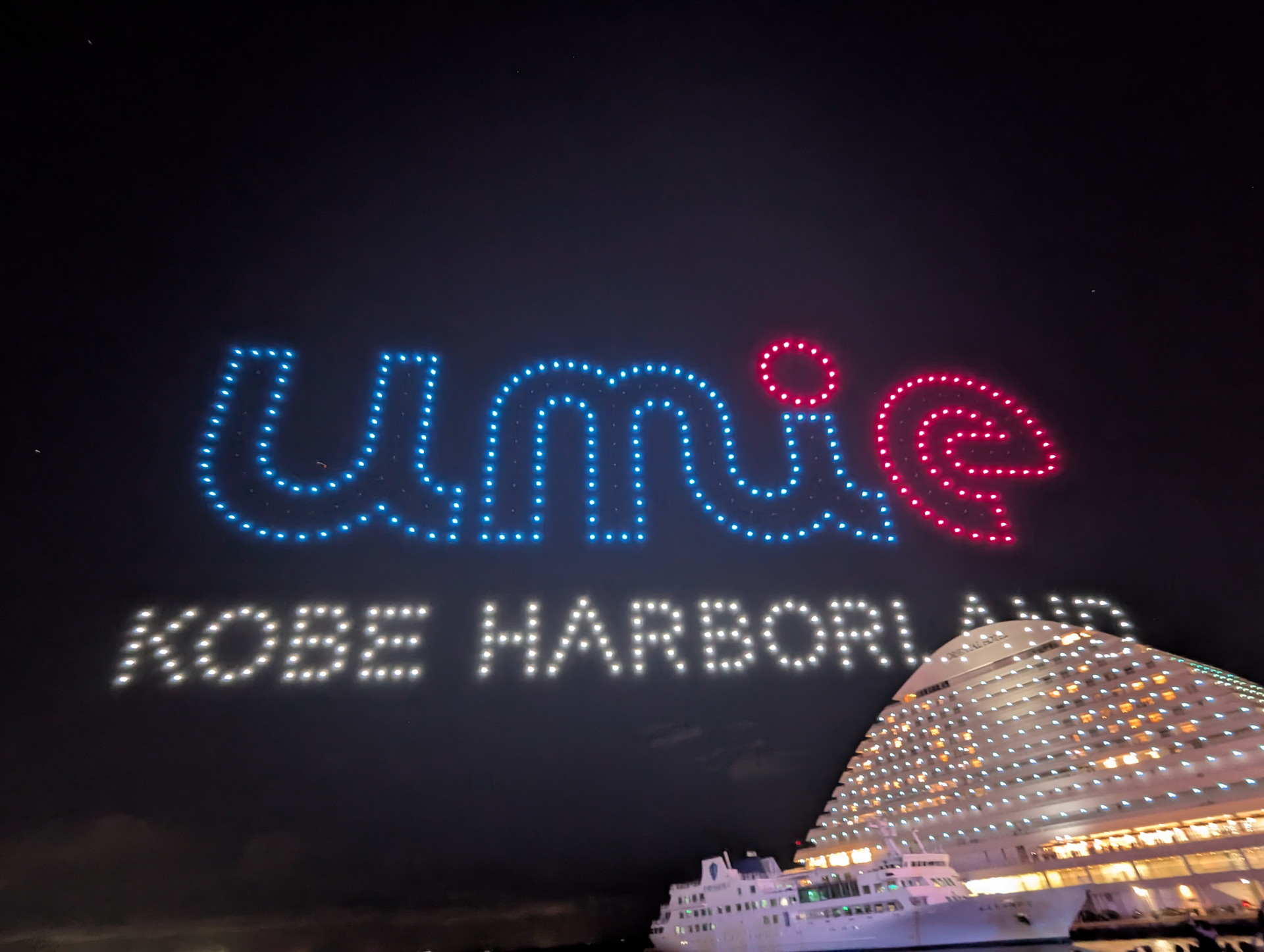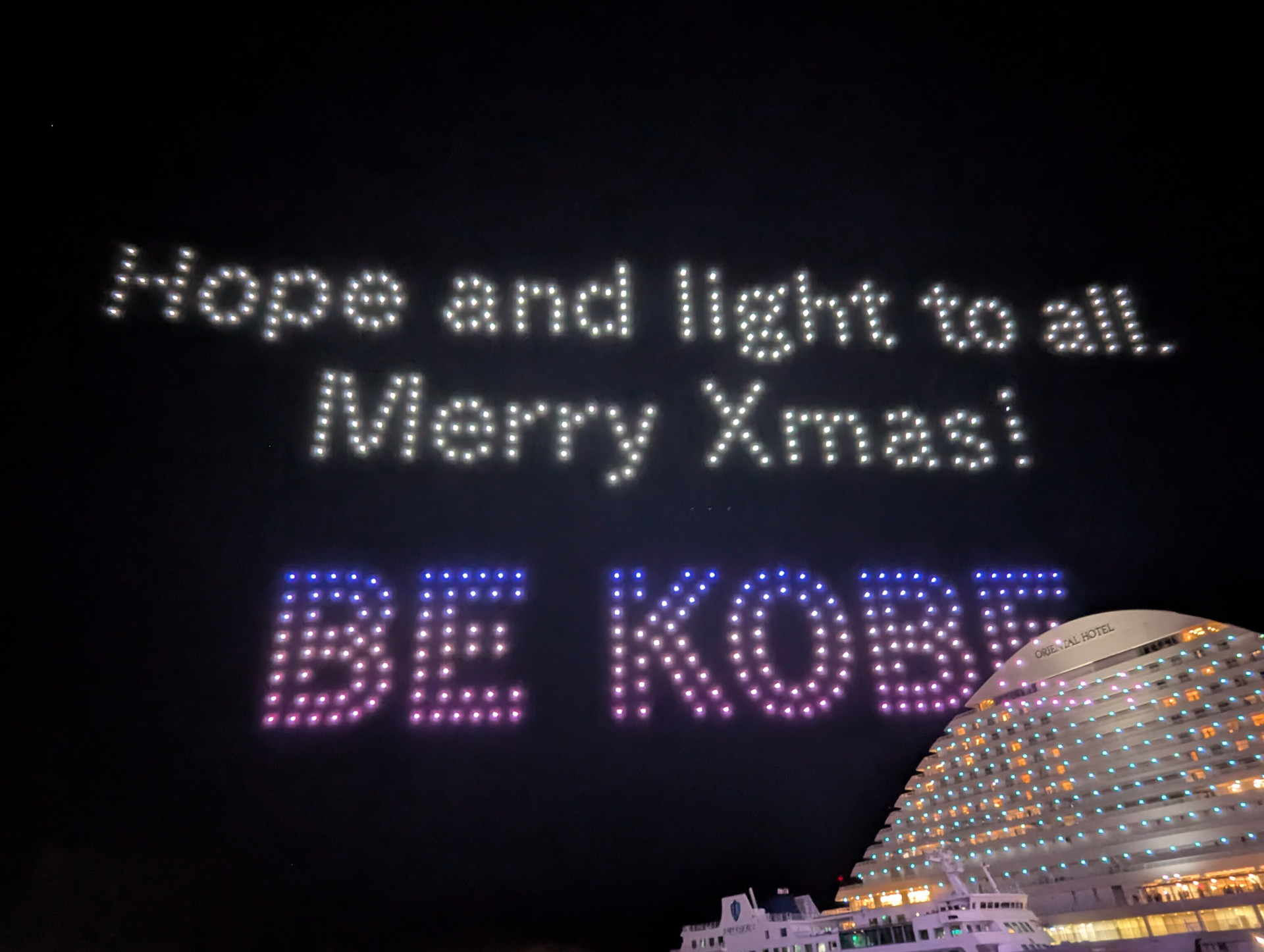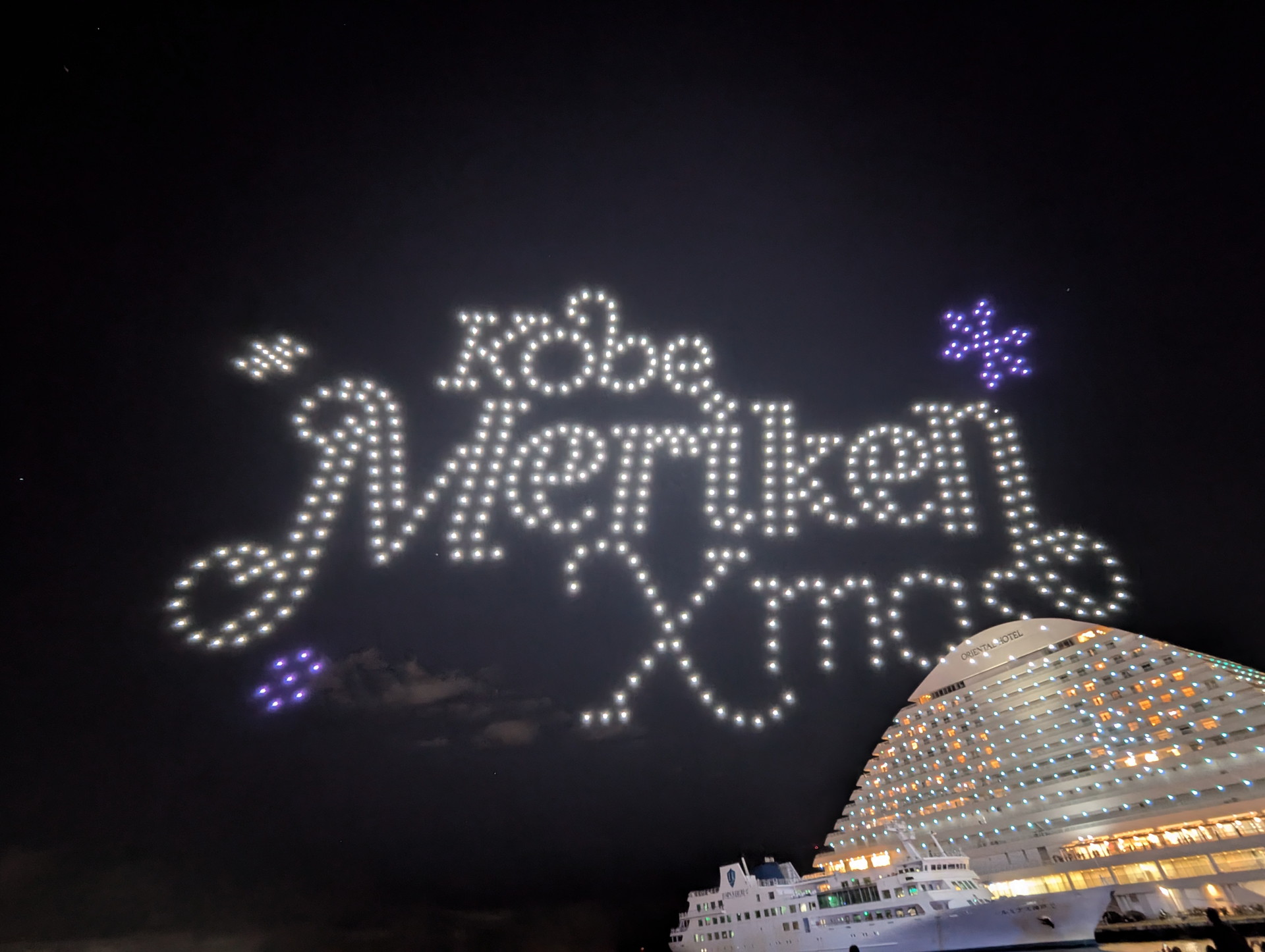 お待ちかねの神戸メリケンクリスマスのメインイベント「ドローンショー」が始まりました。