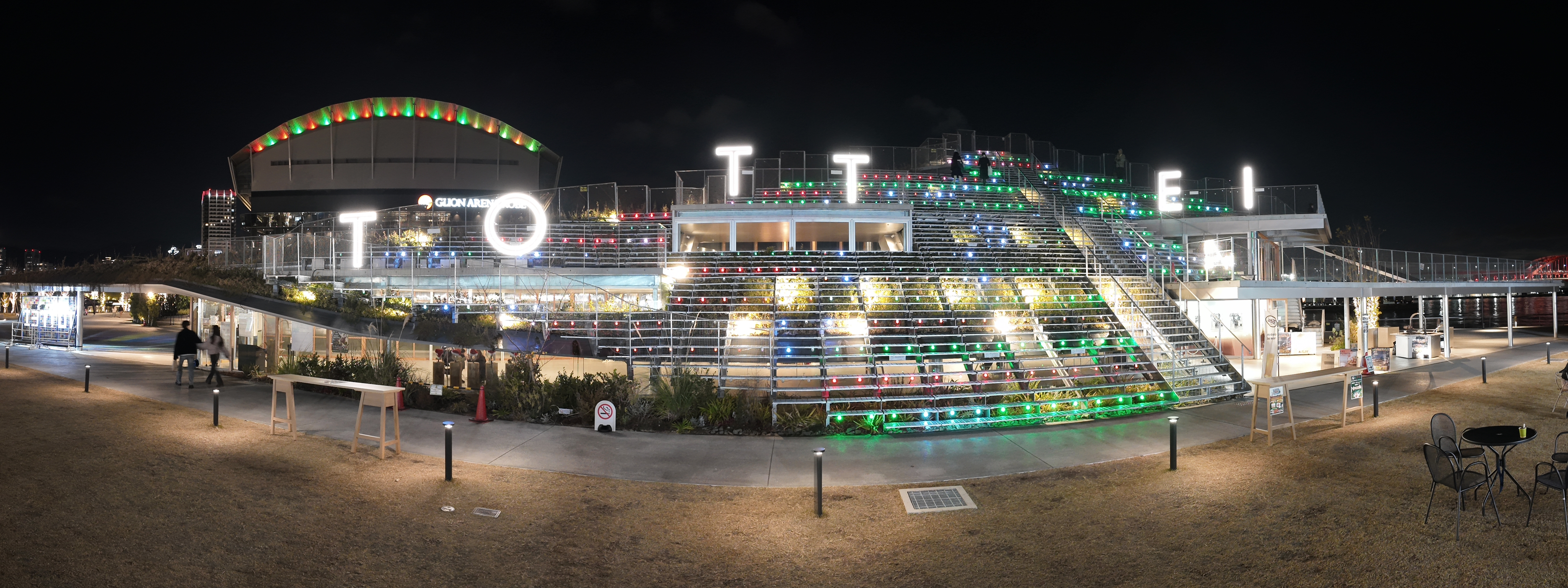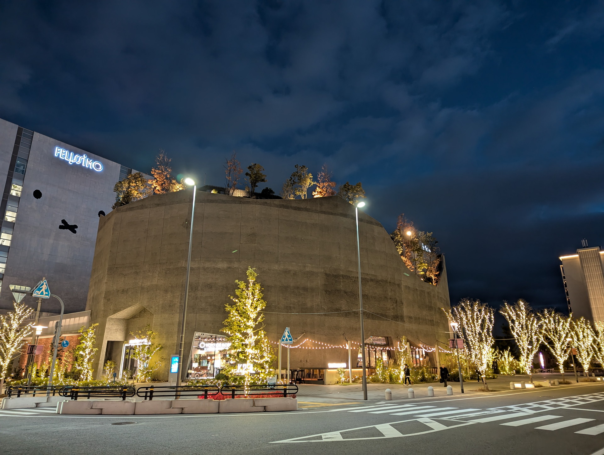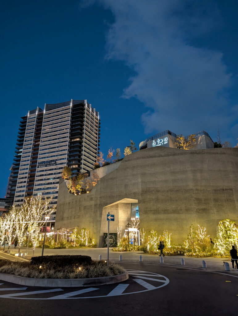 「TOTTEI PARK」と「メリケンパーク」の間にある「アトア(水族館)」を通ったら、ここもライトアップされていて綺麗でした。