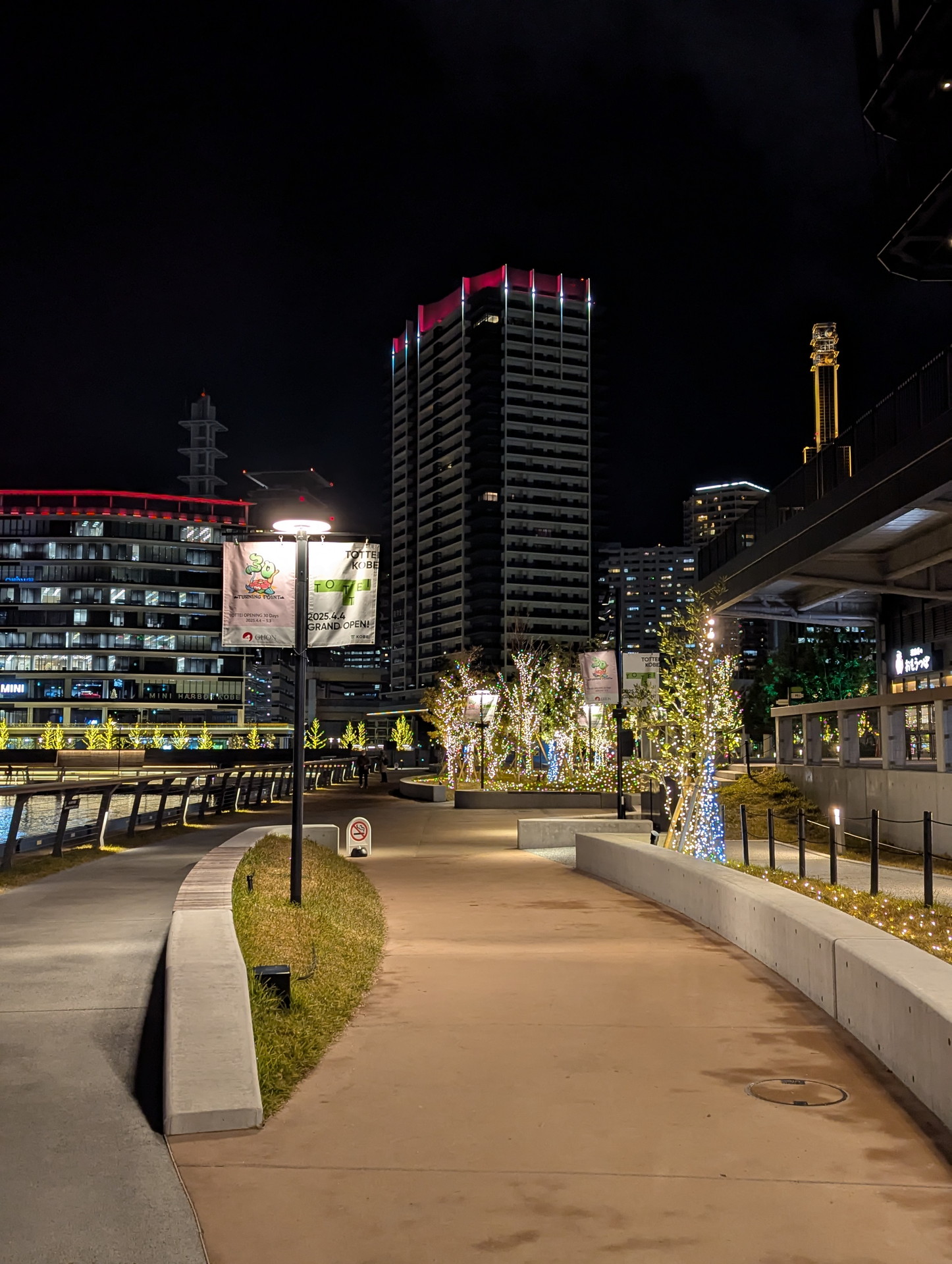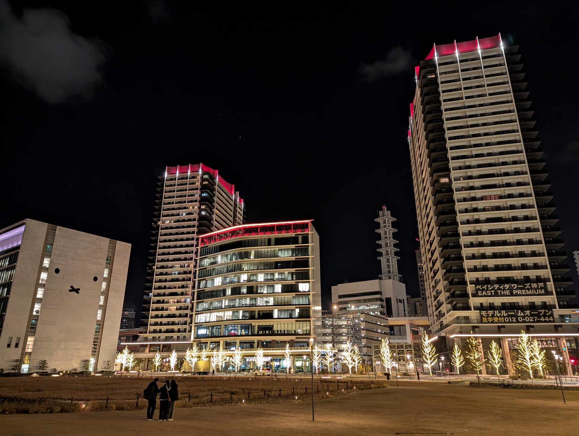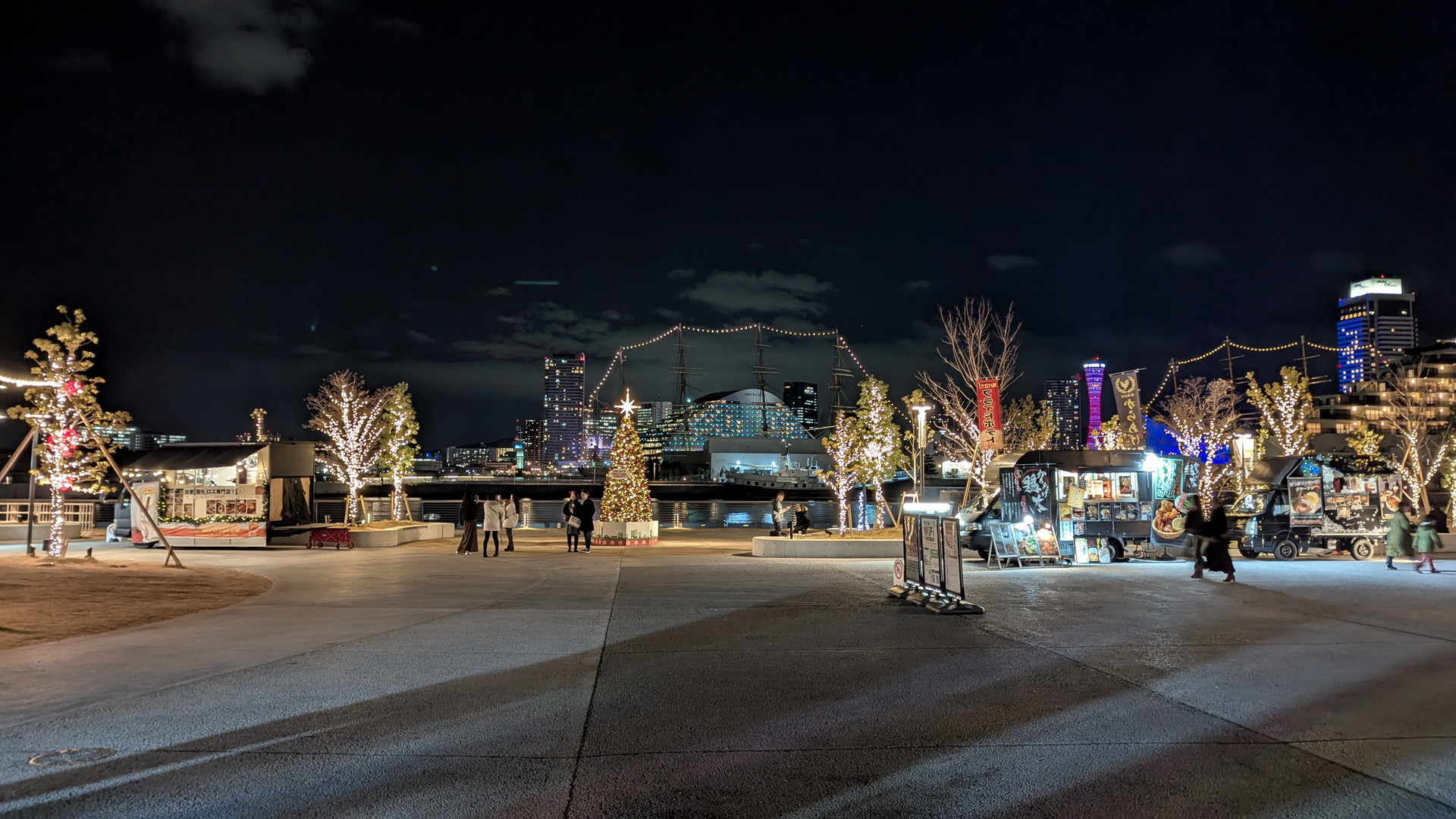 メリケンパークから戻ってきたらすっかり暗くなっていたので、ライトアップがとても綺麗でした。