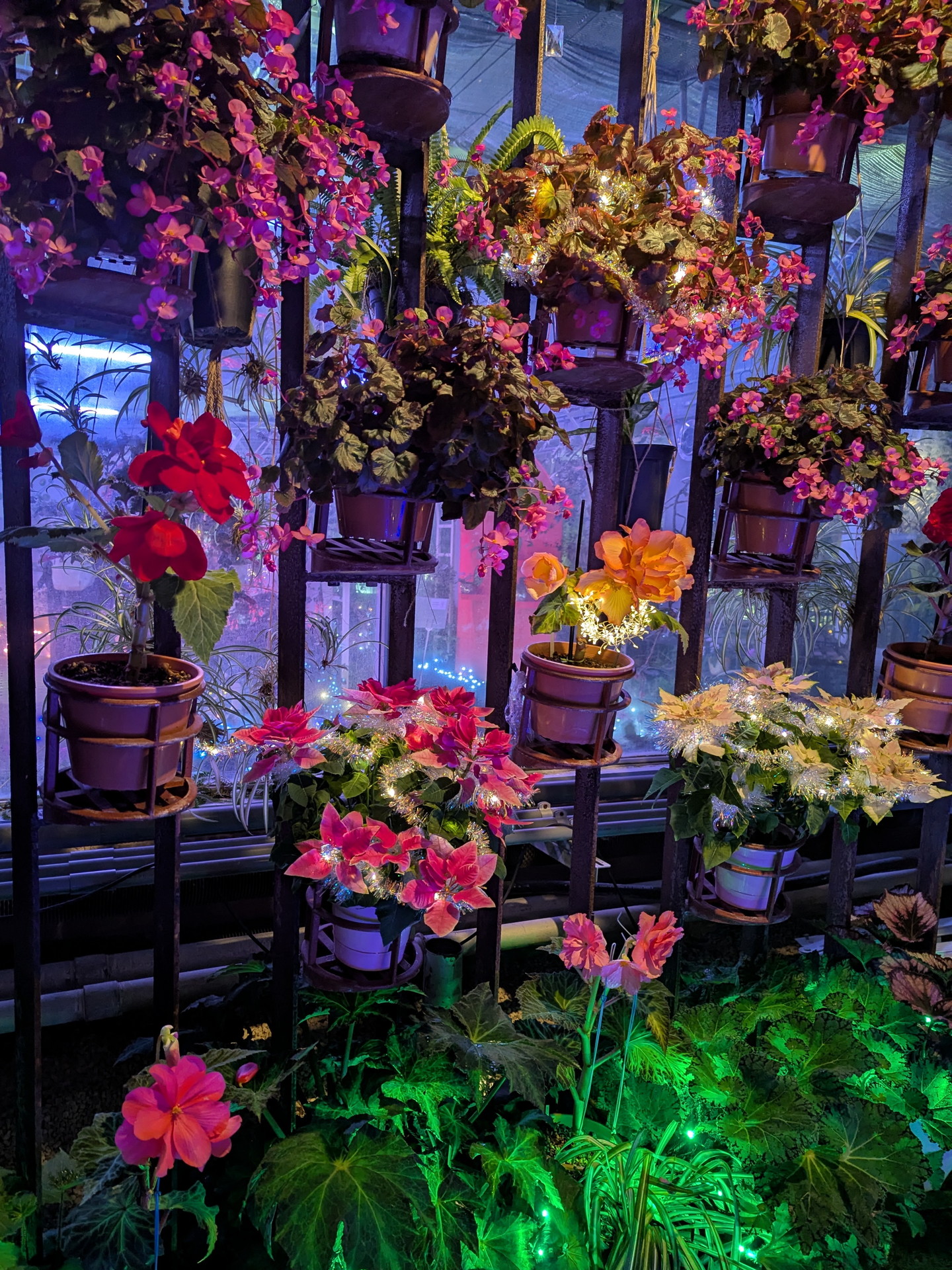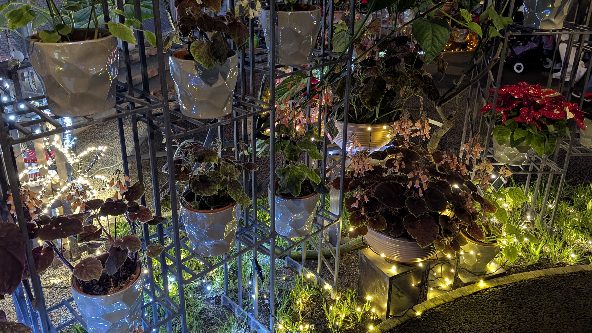 色とりどりベゴニアが電球に照られされて、なかなか美しい眺めでした。