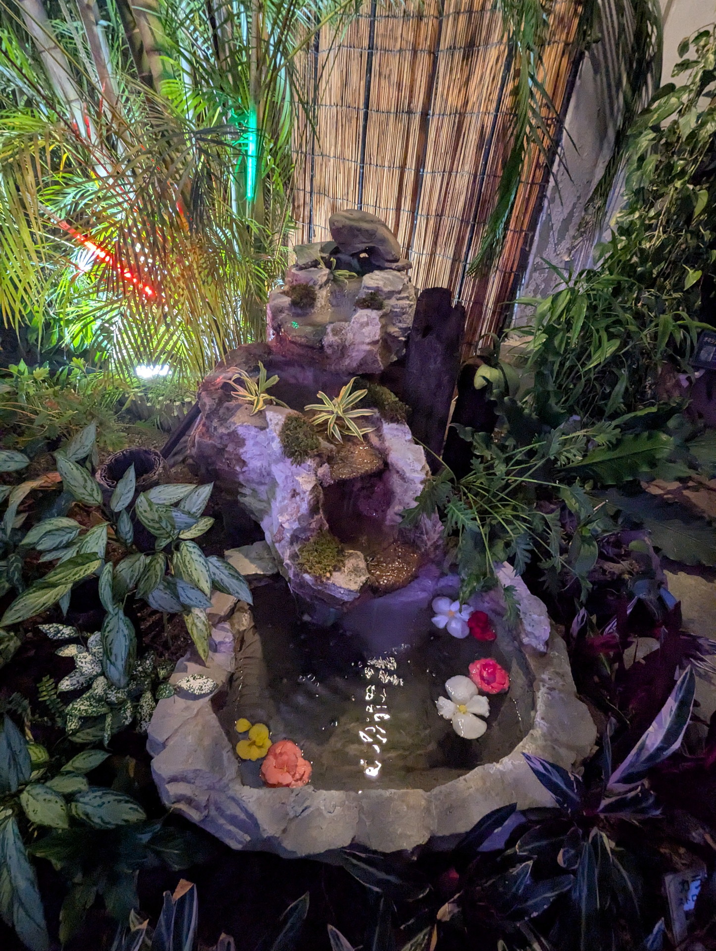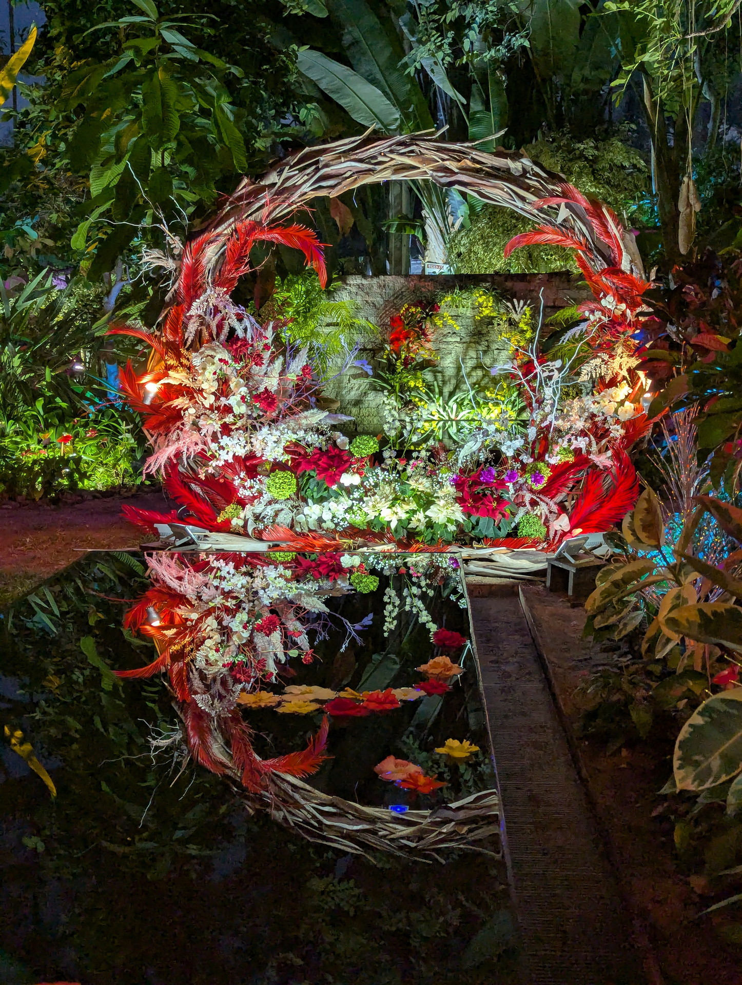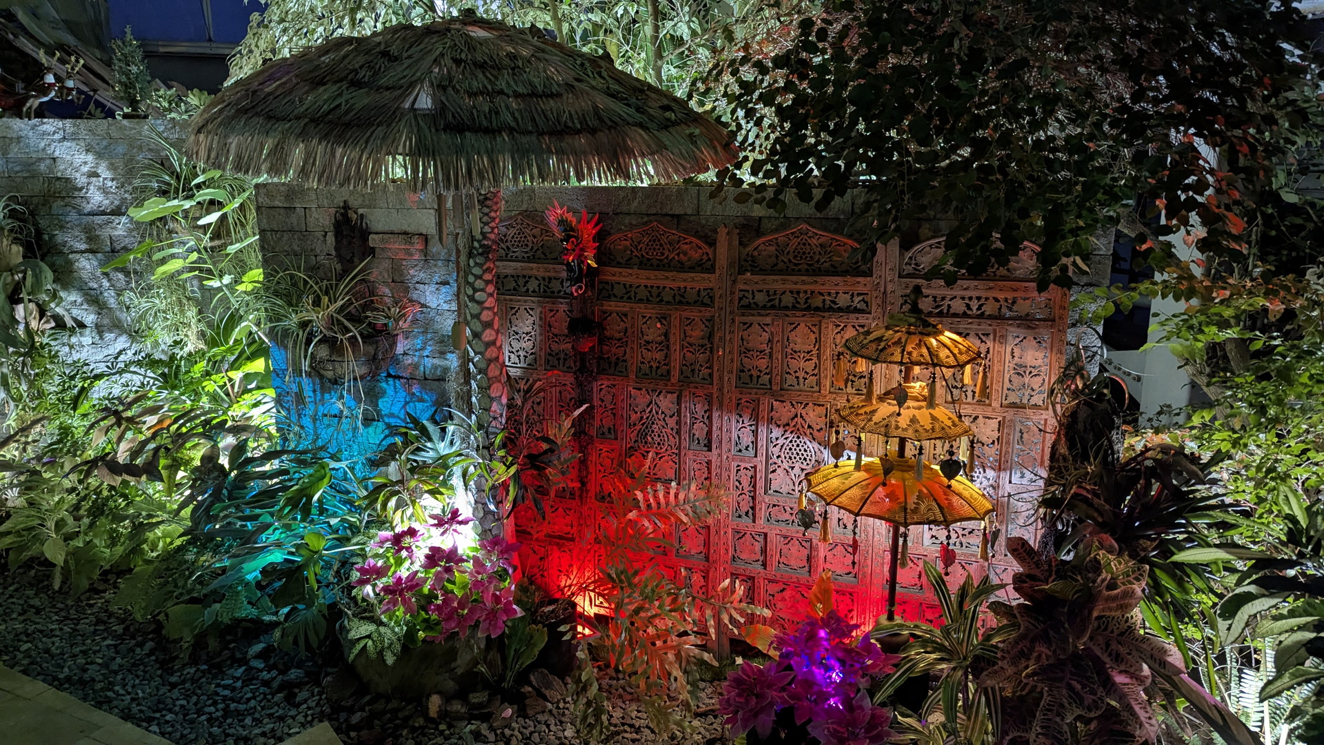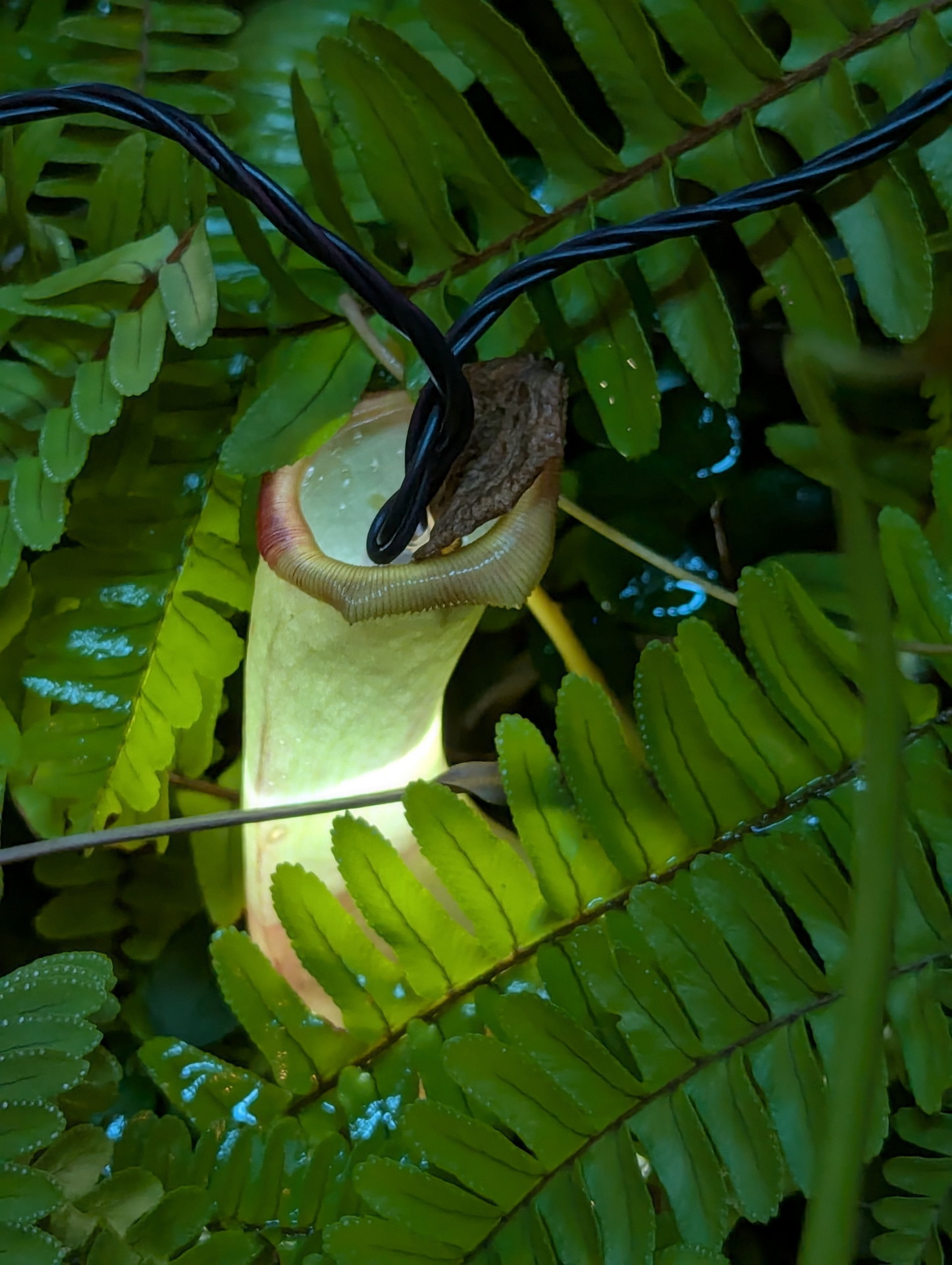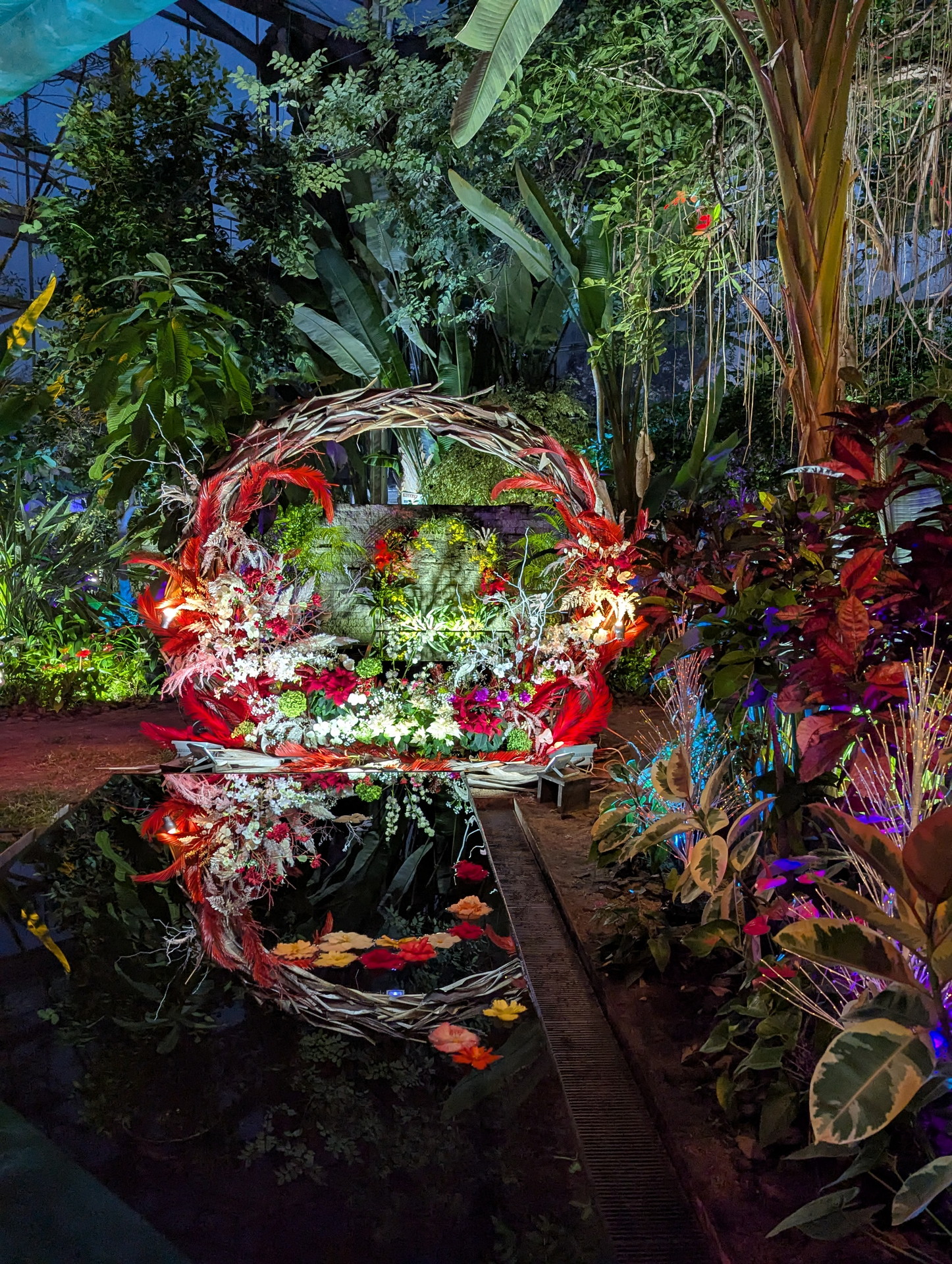 「大温室」エリアでは熱帯植物を鑑賞することができて、特に天井から吊り下げられた無数のベゴニアが咲き乱れる様子は圧巻です。また、世界的に有名な「ウツボカズラ」のコレクションなどが有名なのですが、ライトアップされてどんな雰囲気になっているのでしょうか。