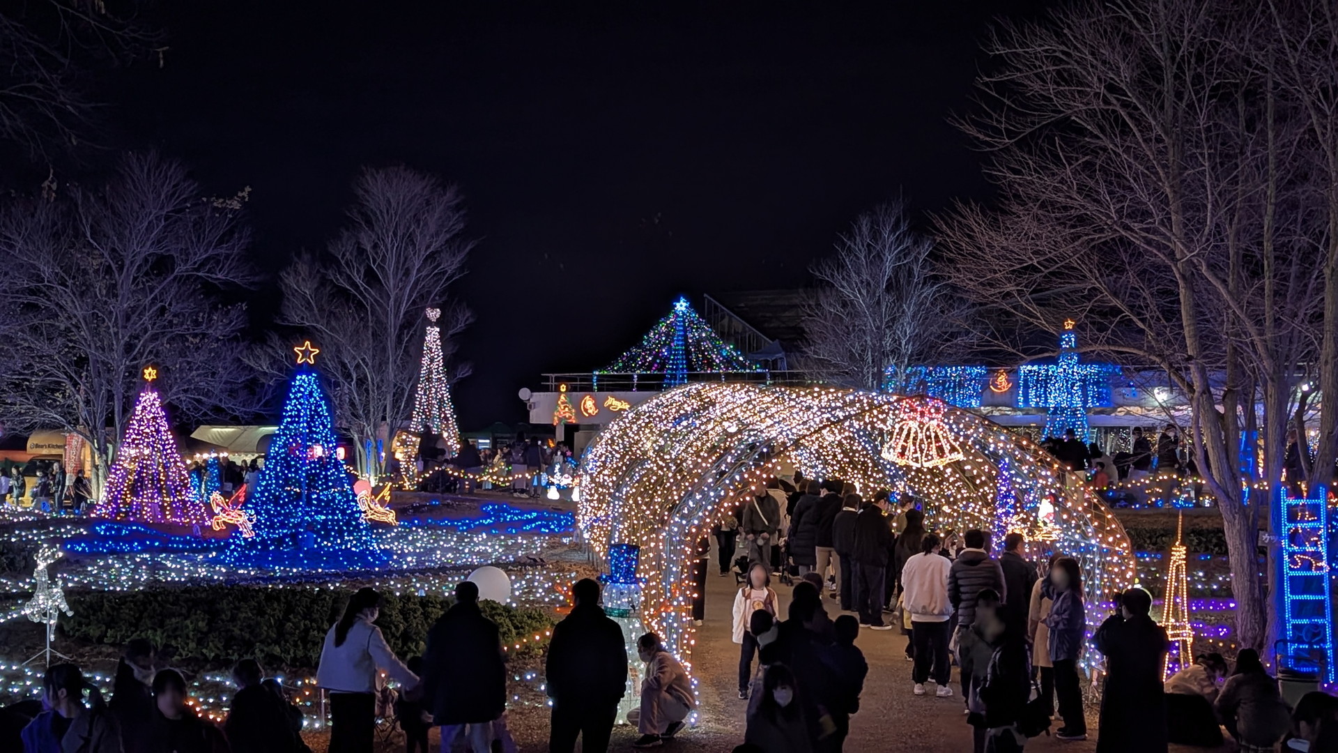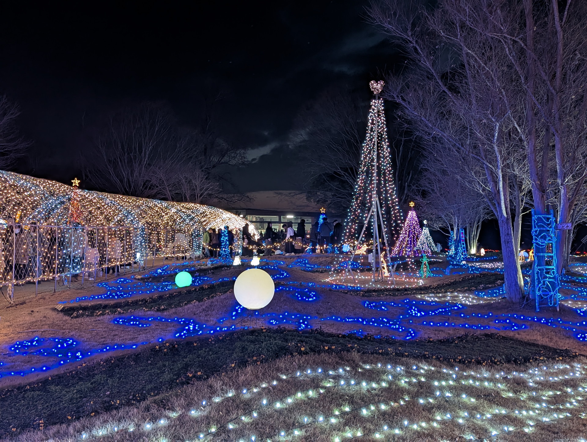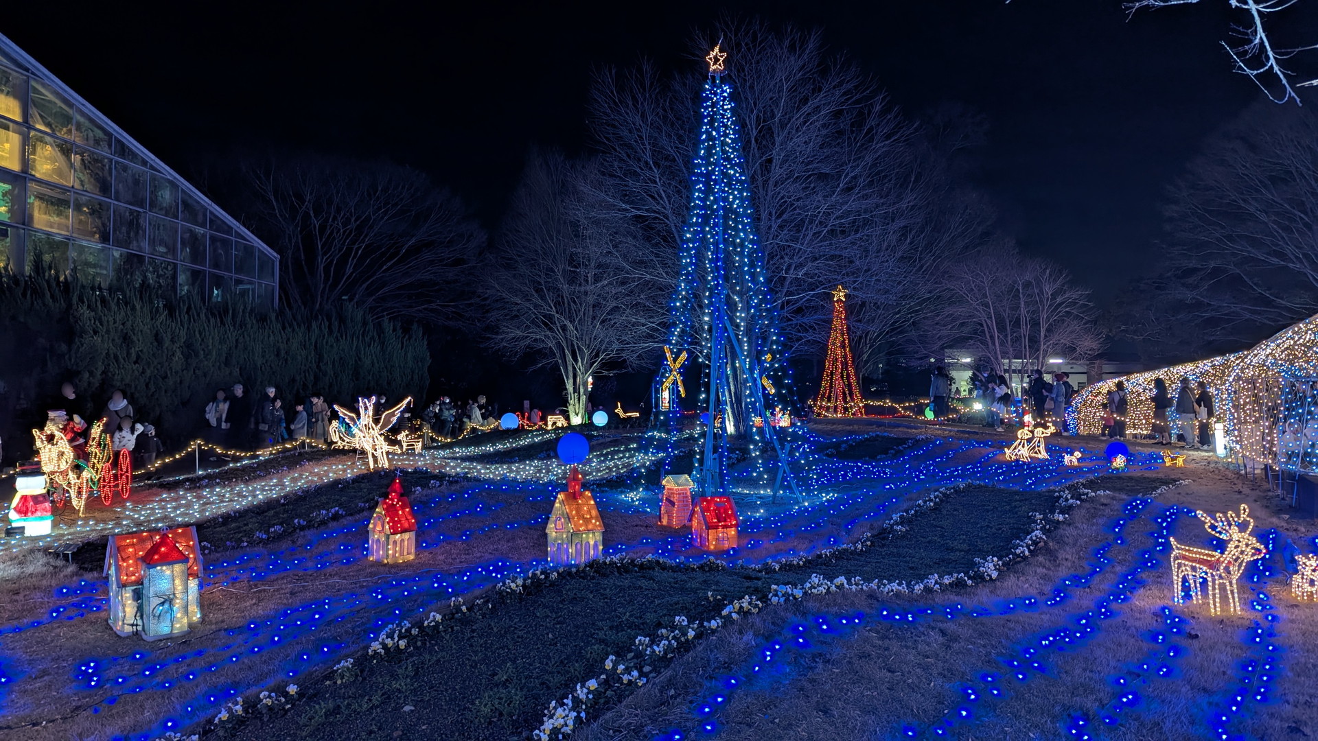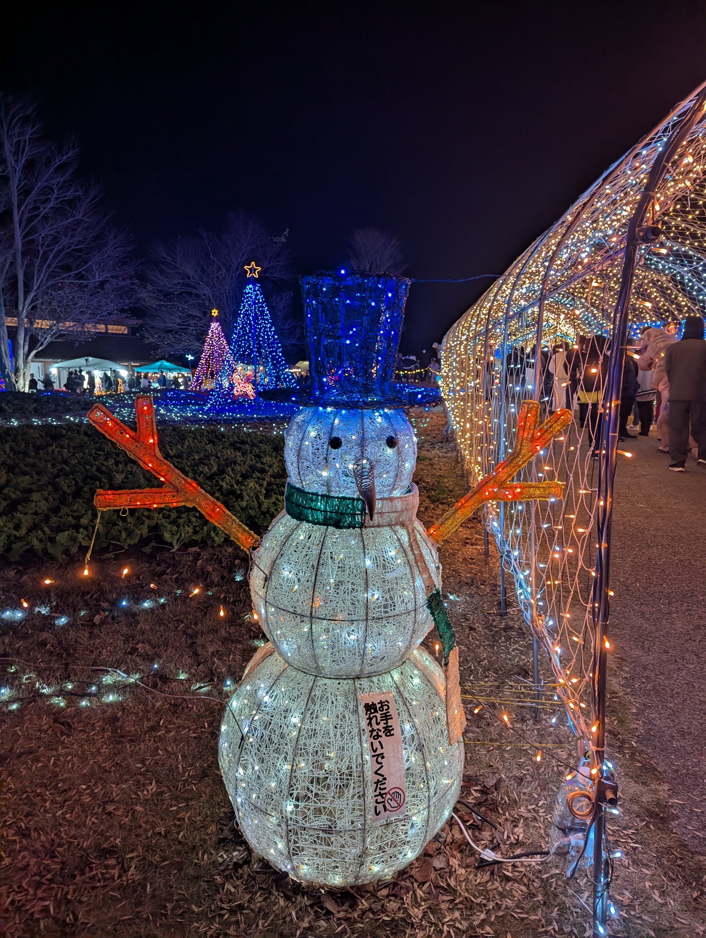 (トンネル内の右側に行列ができてますが、大温室を見る人の行列になります。ライトアップスタート時は行列はできていなかったので、早めに見に行っておいてよかったです)