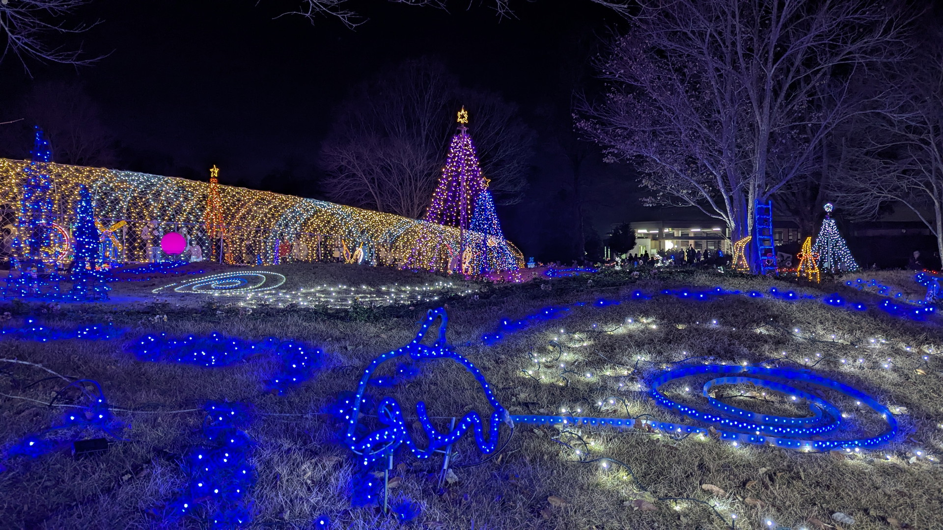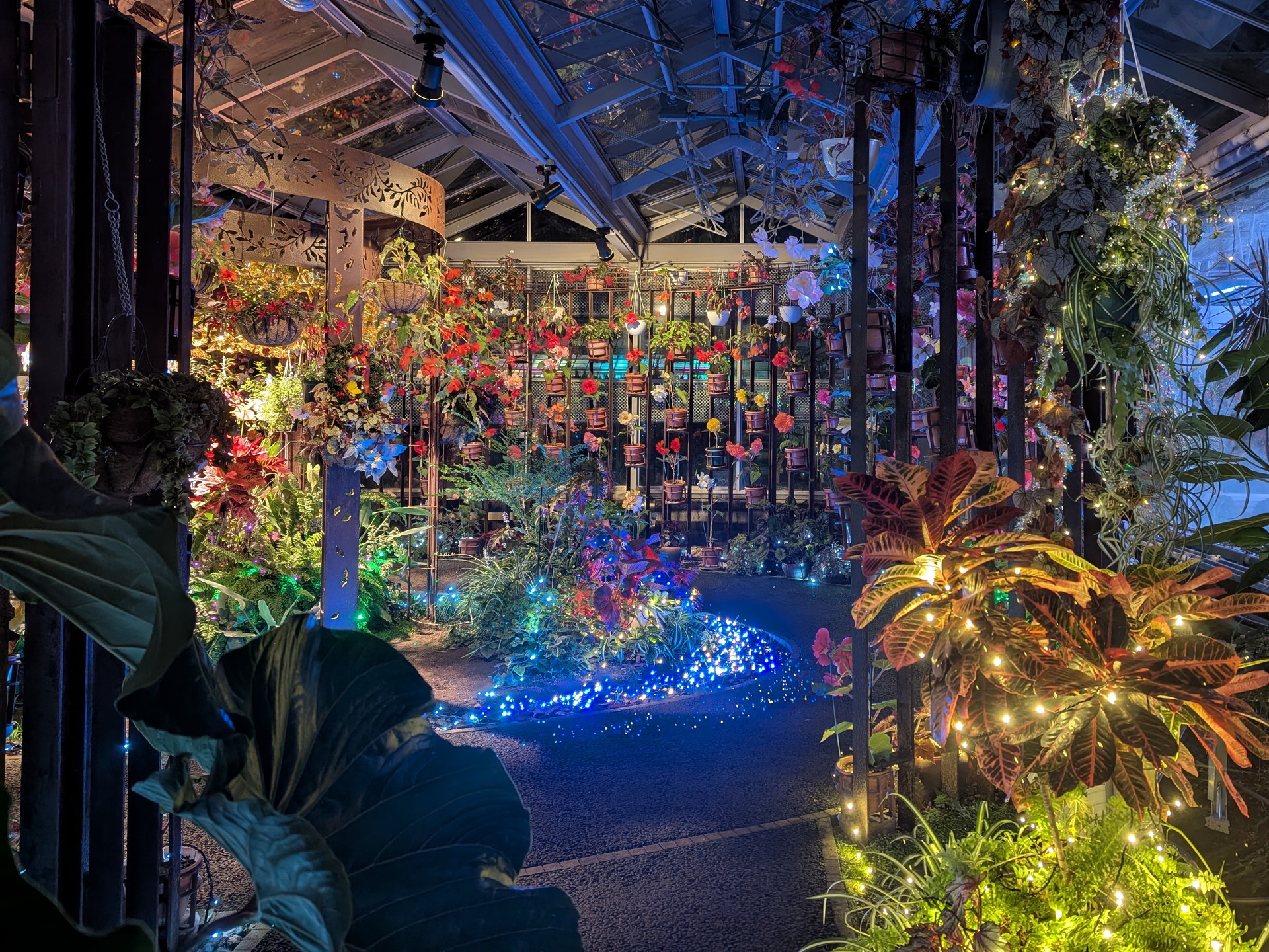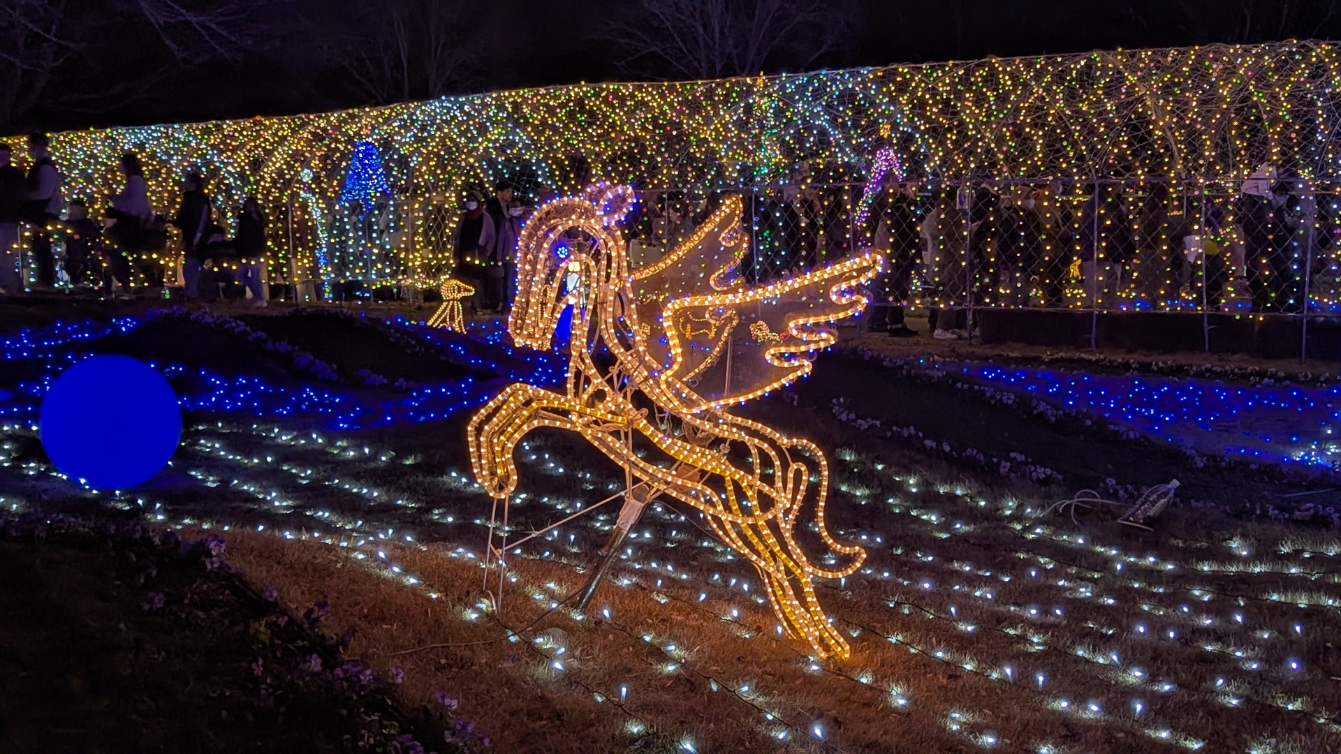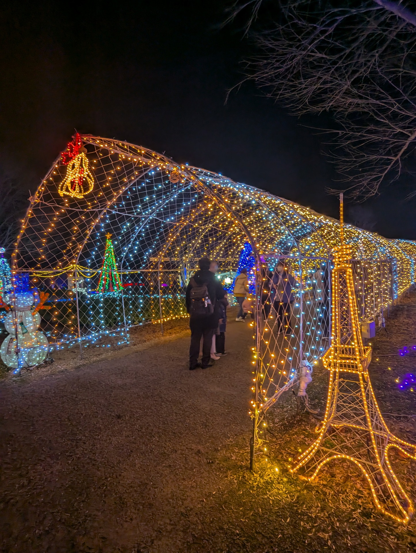 (トンネル内の右側に行列ができてますが、大温室を見る人の行列になります。ライトアップスタート時は行列はできていなかったので、早めに見に行っておいてよかったです)