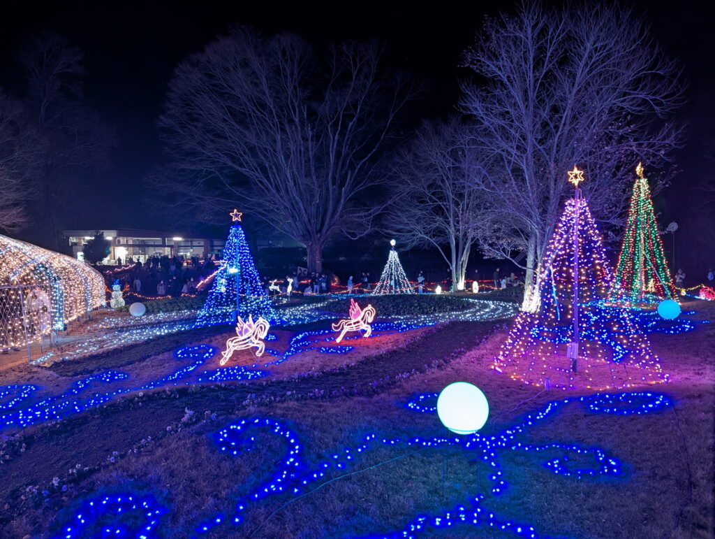 兵庫県加西市にある「兵庫県立フラワーセンター」で2025/12/6(土)~12/21(日)の土曜、日曜に実施されていた「花と光のクリスマス」を見に行ってきました。