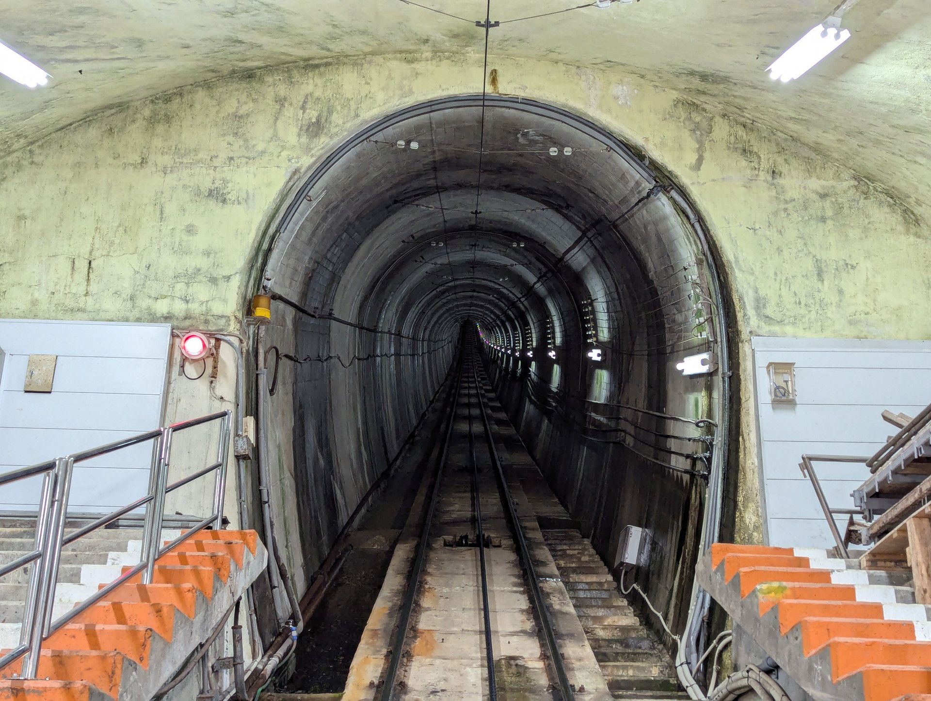 そんな高低差約400m、全長約800mのトンネルを約5分で走り抜けます。