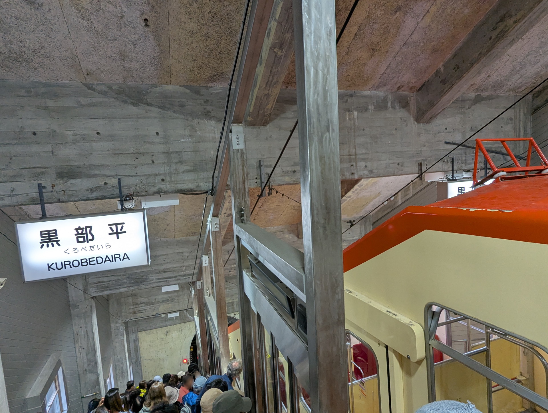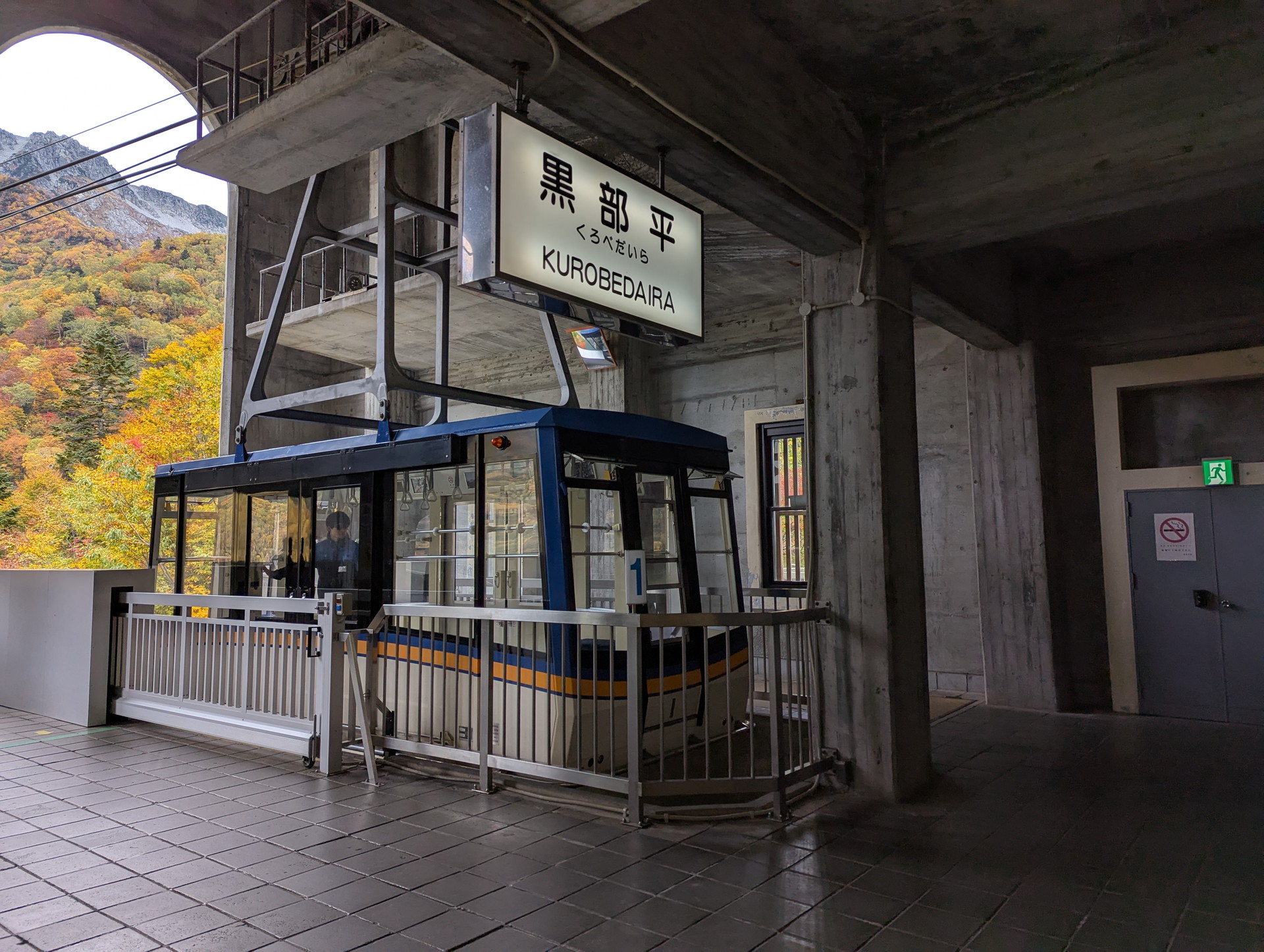 続いては「黒部ケーブルカー」で「黒部平駅」から「黒部湖駅」に戻ります。