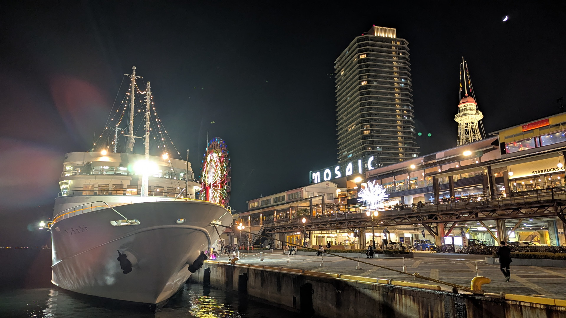神戸港を巡るレストランクルーズ船「コンチェルト」の「トワイライトクルーズ」を楽しんだあと、2次会に行く前にライトアップされた神戸ハーバーランドを少し散歩してみました。