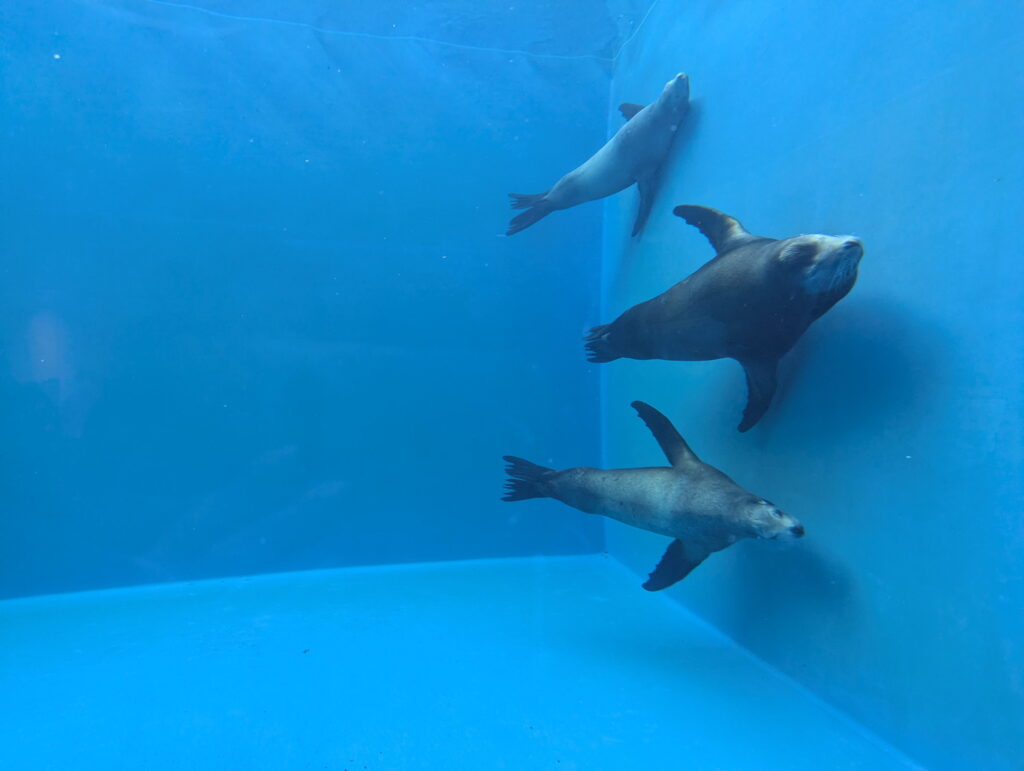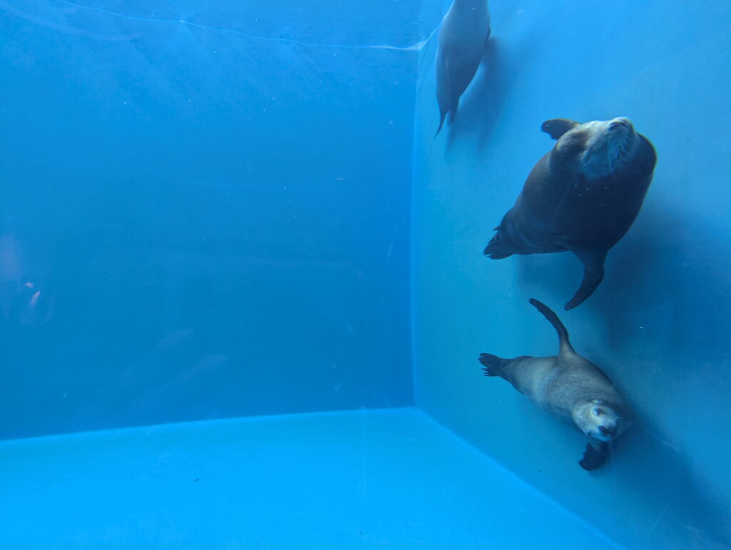 アシカ3匹が気持ちよさそうにスーッと泳いできます。