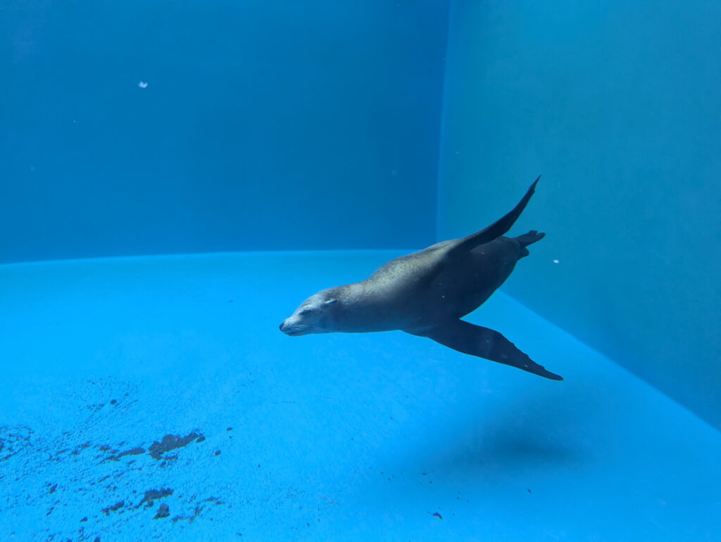 AQUALIVE棟の3階ではアシカやアザラシが泳いでいる姿を見ることができます。