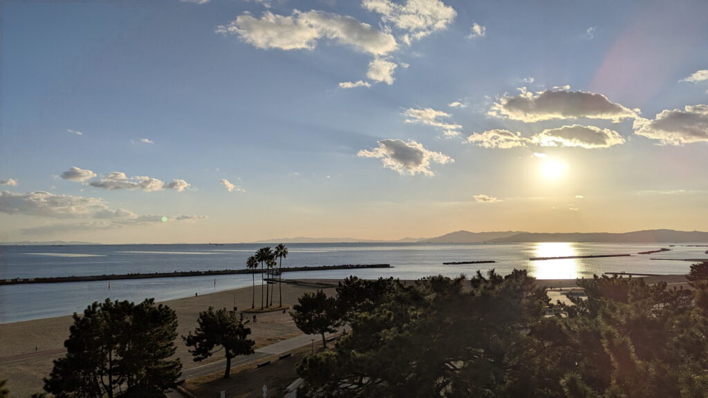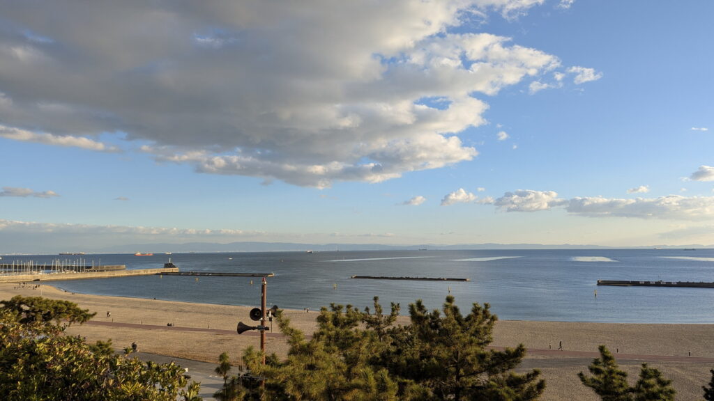 AQUALIVE棟の4階が見える須磨海岸を連続写真で撮ってみました。