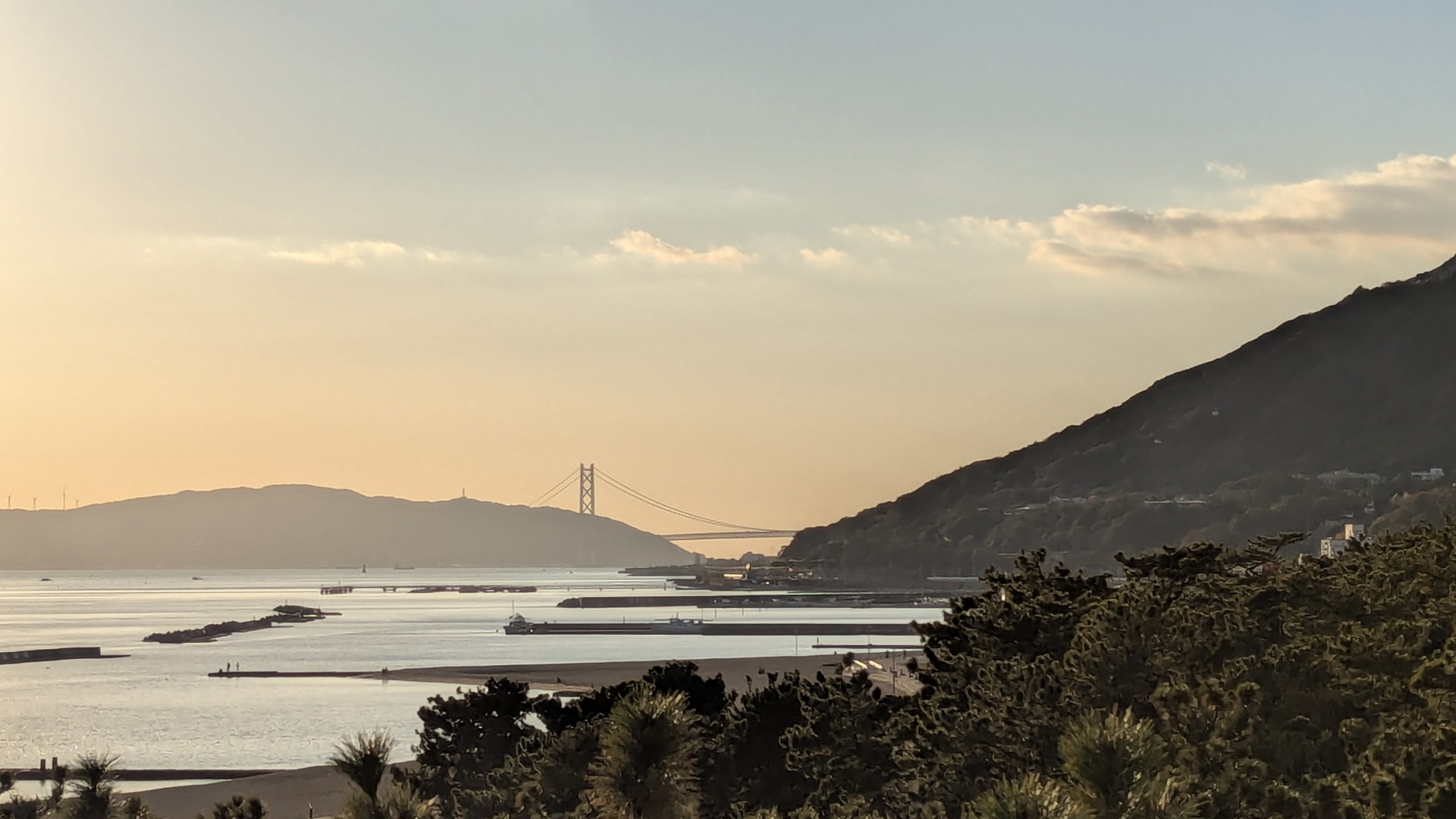 明石海峡大橋がシルエットになって見えています。