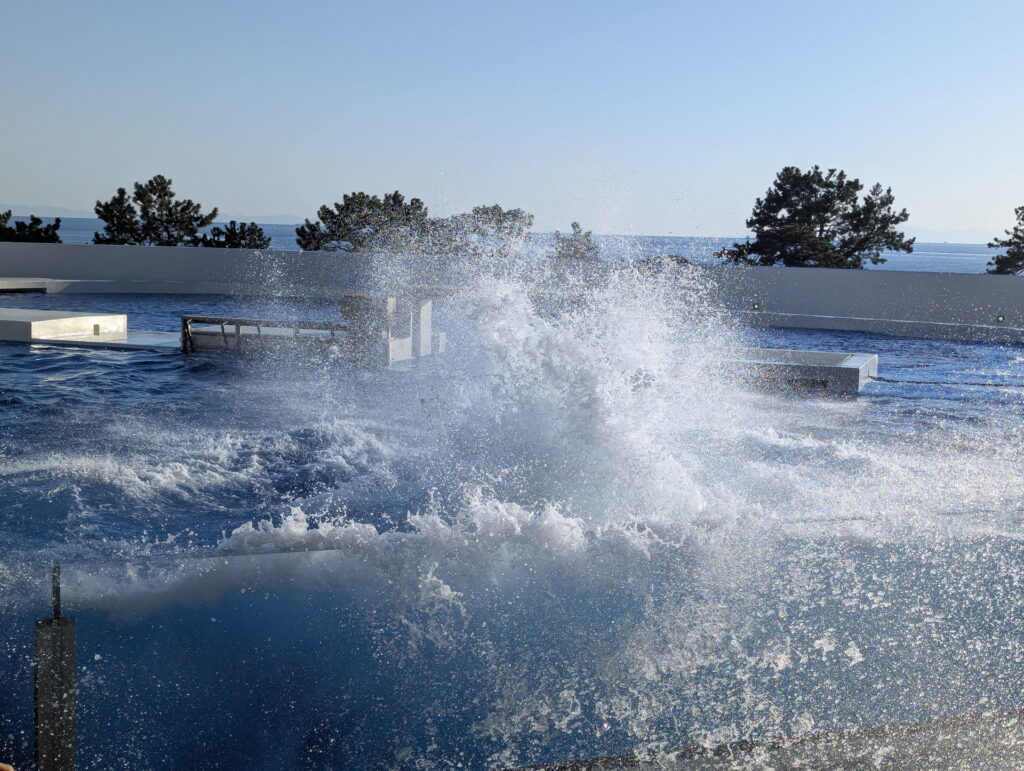 ここからはシャチが豪快にジャンプして、派手に水しぶきをあげていきます。