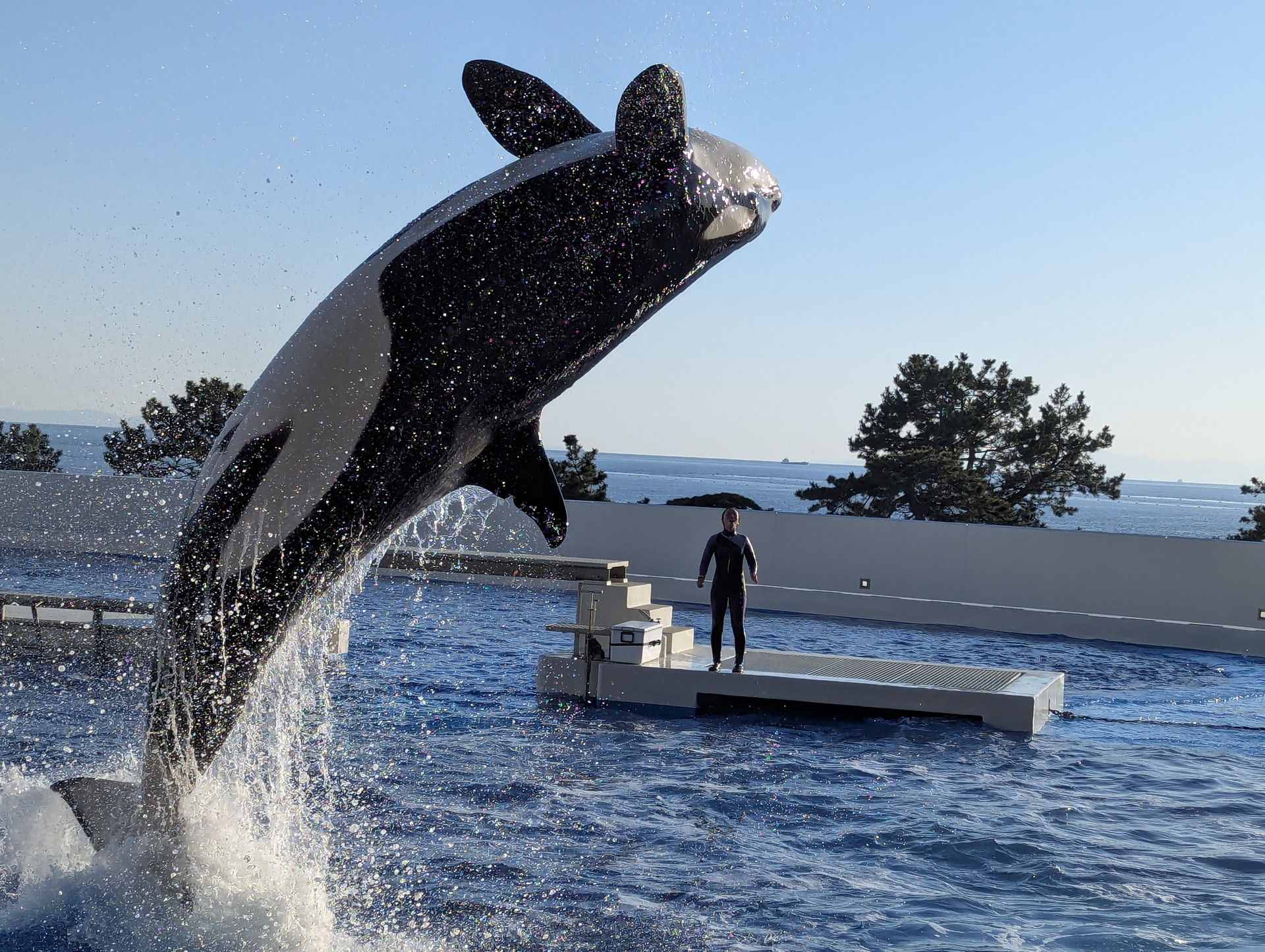 オルカパフォーマンスを見ることができる施設は国内で3か所だけで、西日本ではこの「神戸須磨シーワールド」だけになります。ここ以外で見ることができるのは「鴨川シーワールド(千葉)」、「名古屋港水族館(愛知)」になります。
