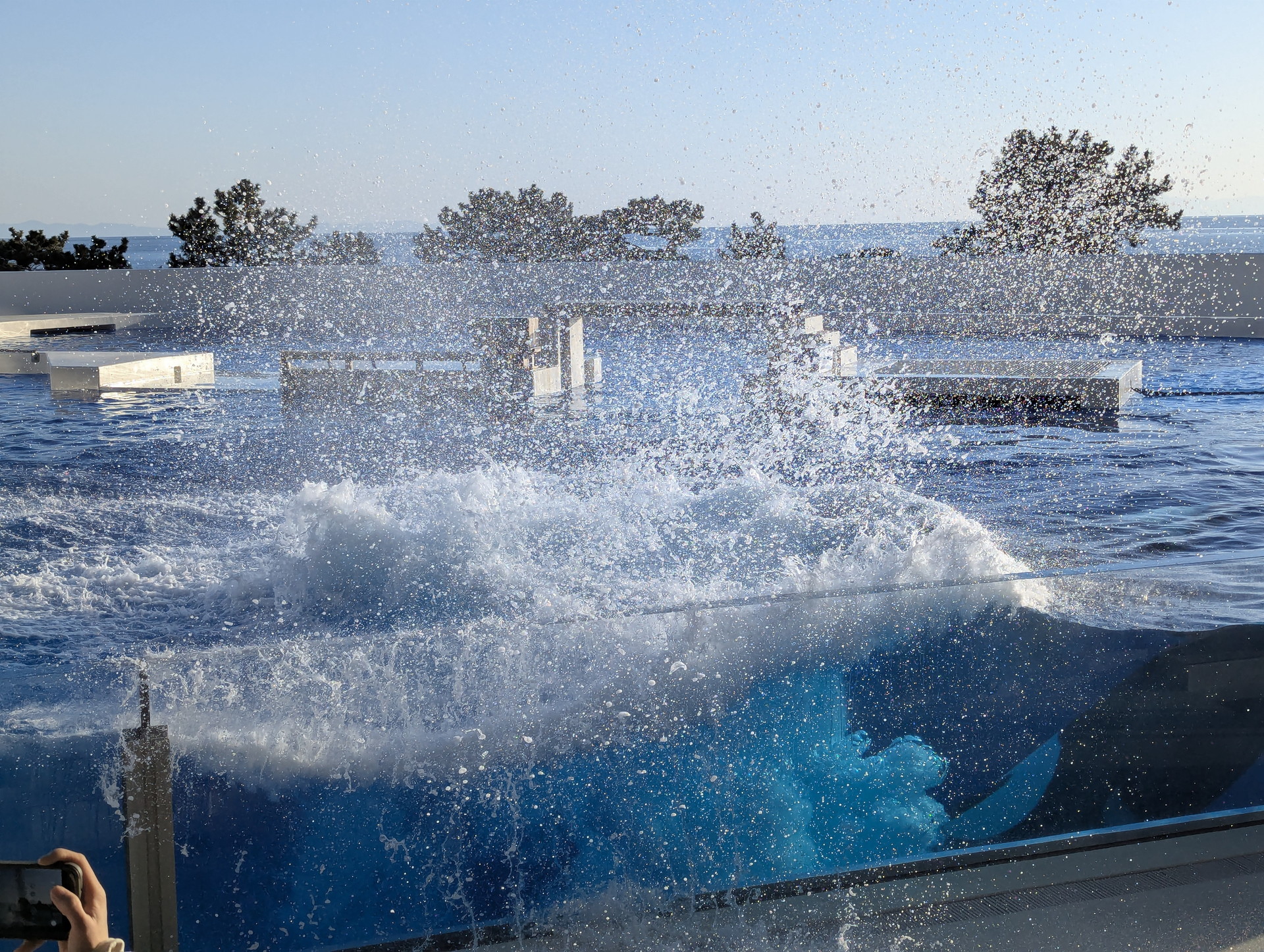 ここからはシャチが豪快にジャンプして、派手に水しぶきをあげていきます。
