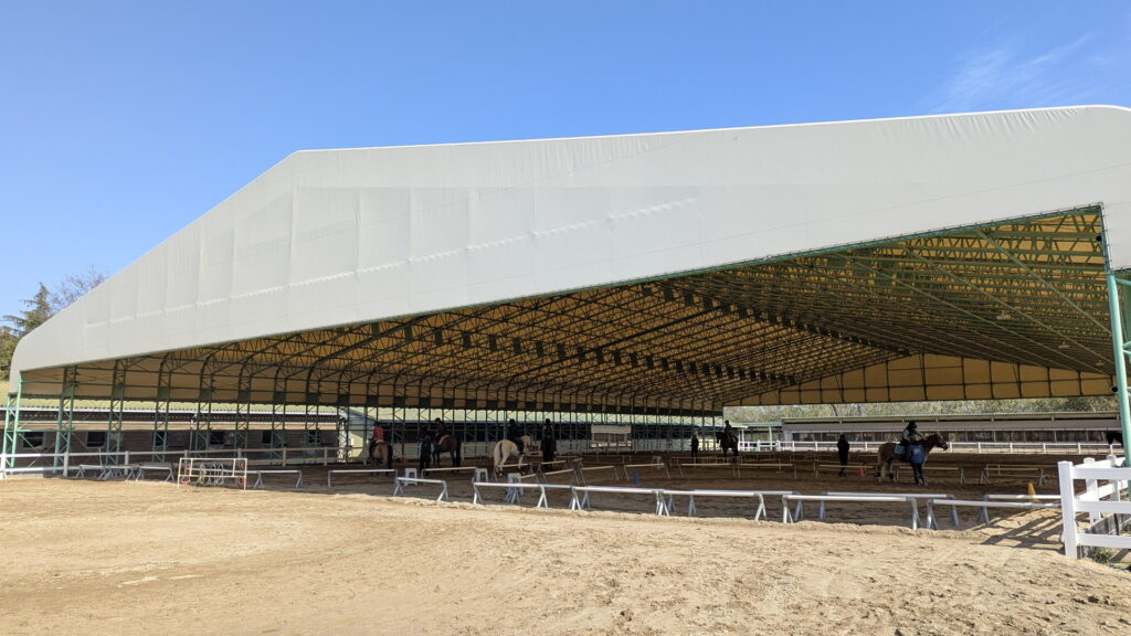 そんな梅見を満喫して車に戻る途中に、体験乗馬ができる「明石乗馬協会」という乗馬クラブの大きなテントがあったのでちょっと見に行きました。