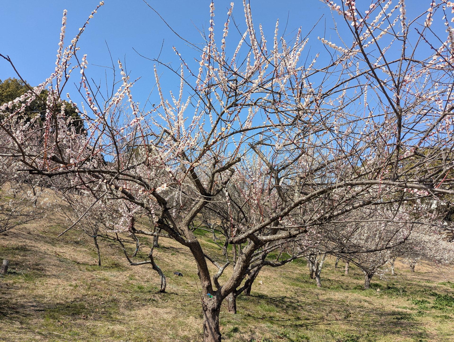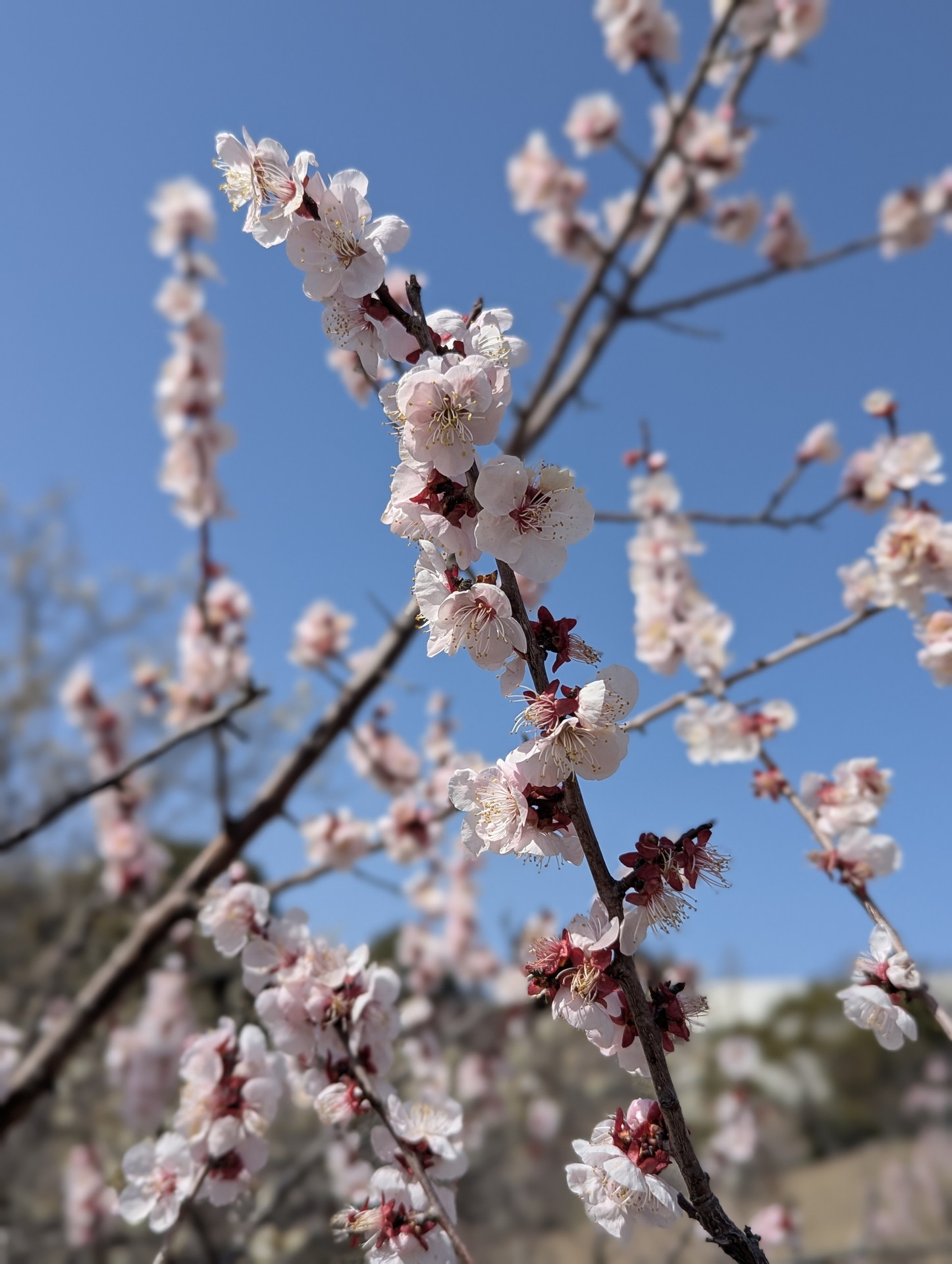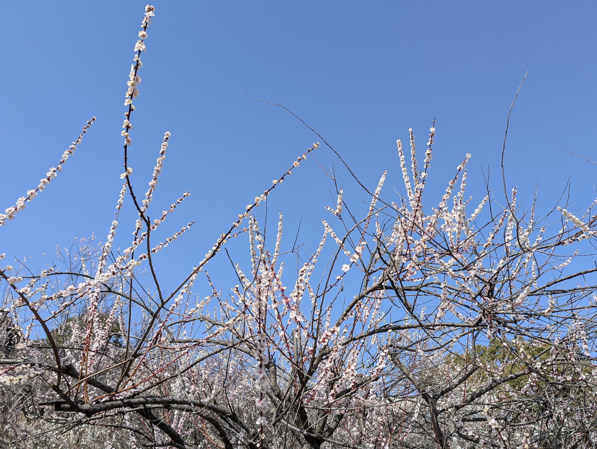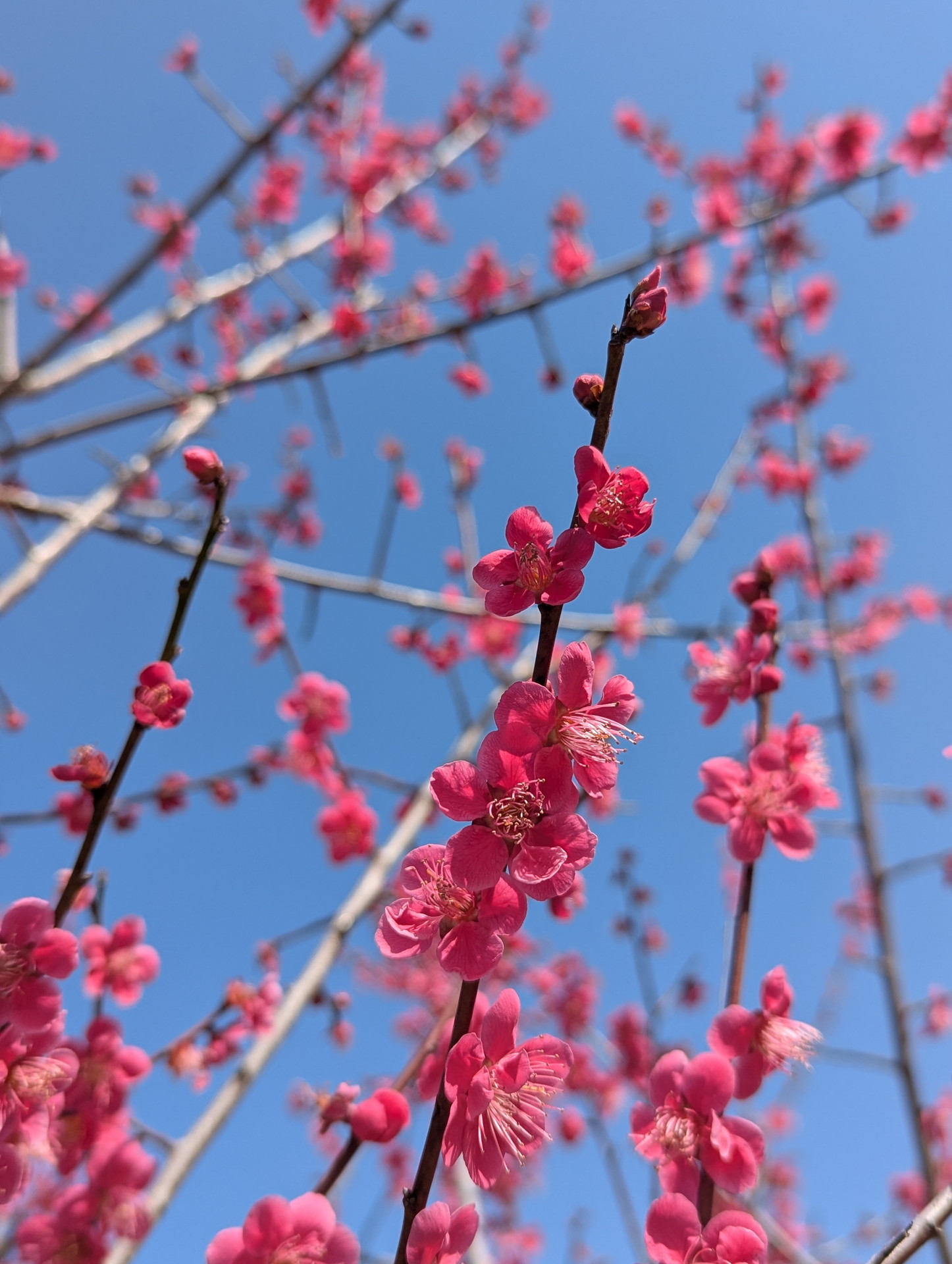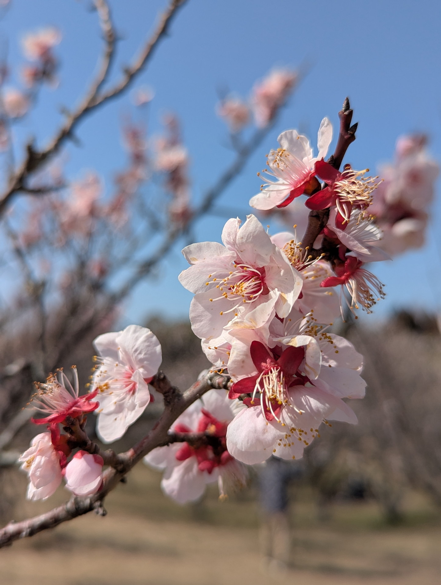 梅はほぼ満開だったのですが、桜みたいにぎっしりと詰まって咲くわけではないので近づいてみないと美しさがよくわからないですね。