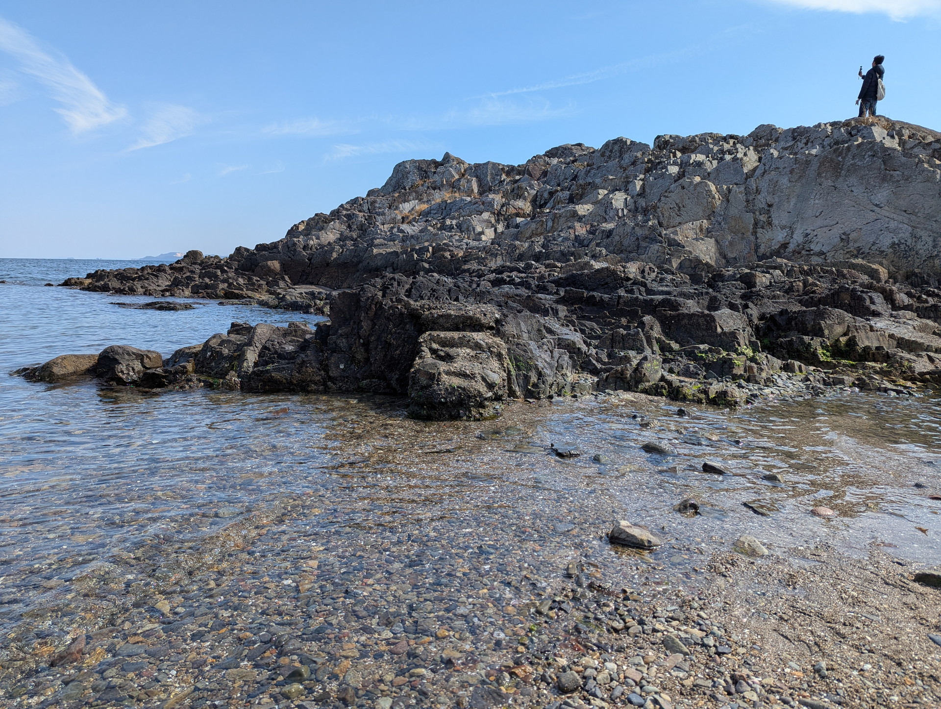 訪れた時がちょうど引き潮のタイミングだったので、「畳岩」によじ登ってみたいと思います。
